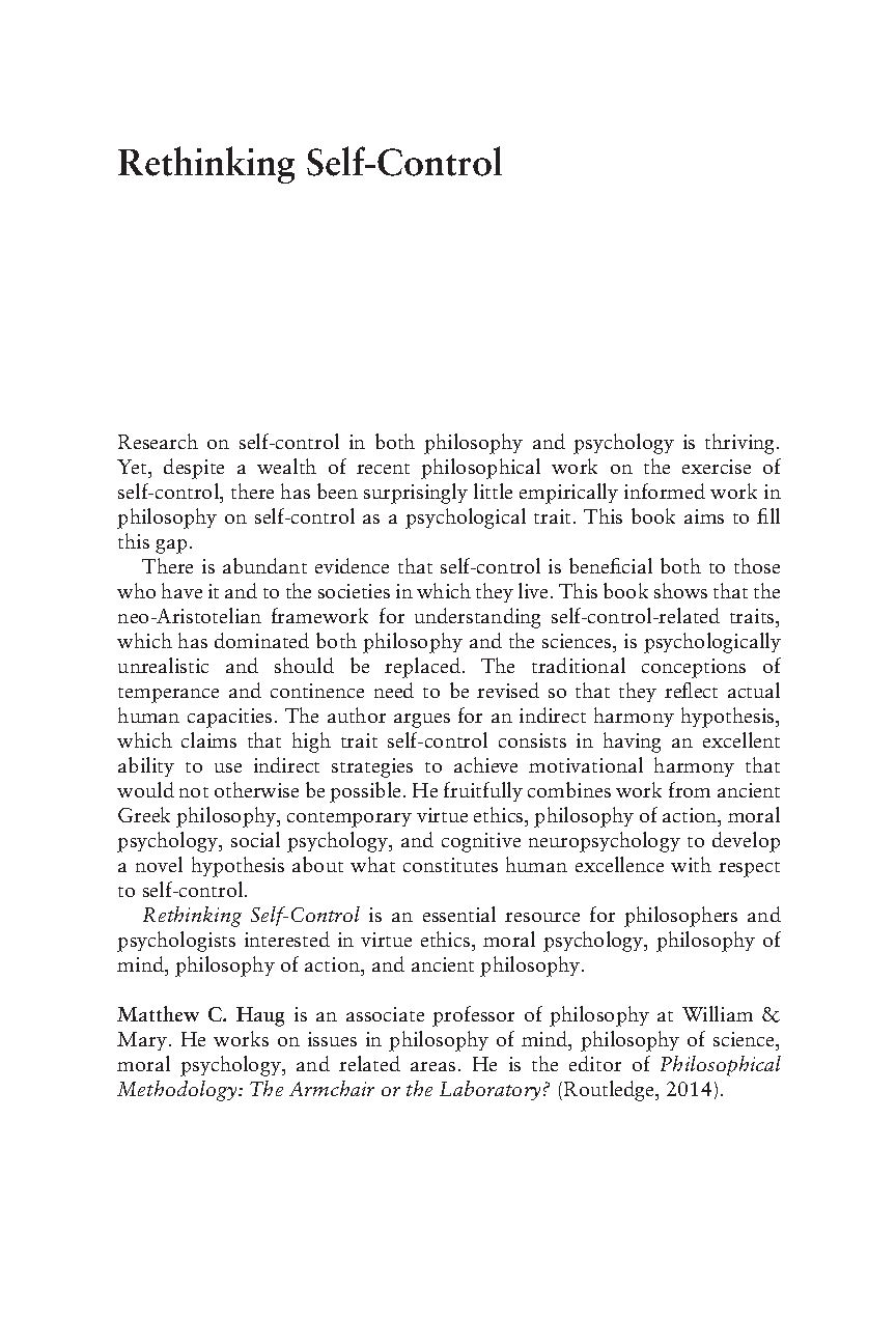 Rethinking Self-Control: A 2024/2025 Edition by Matthew C. Haug - Ace Your Exams on the First Attempt