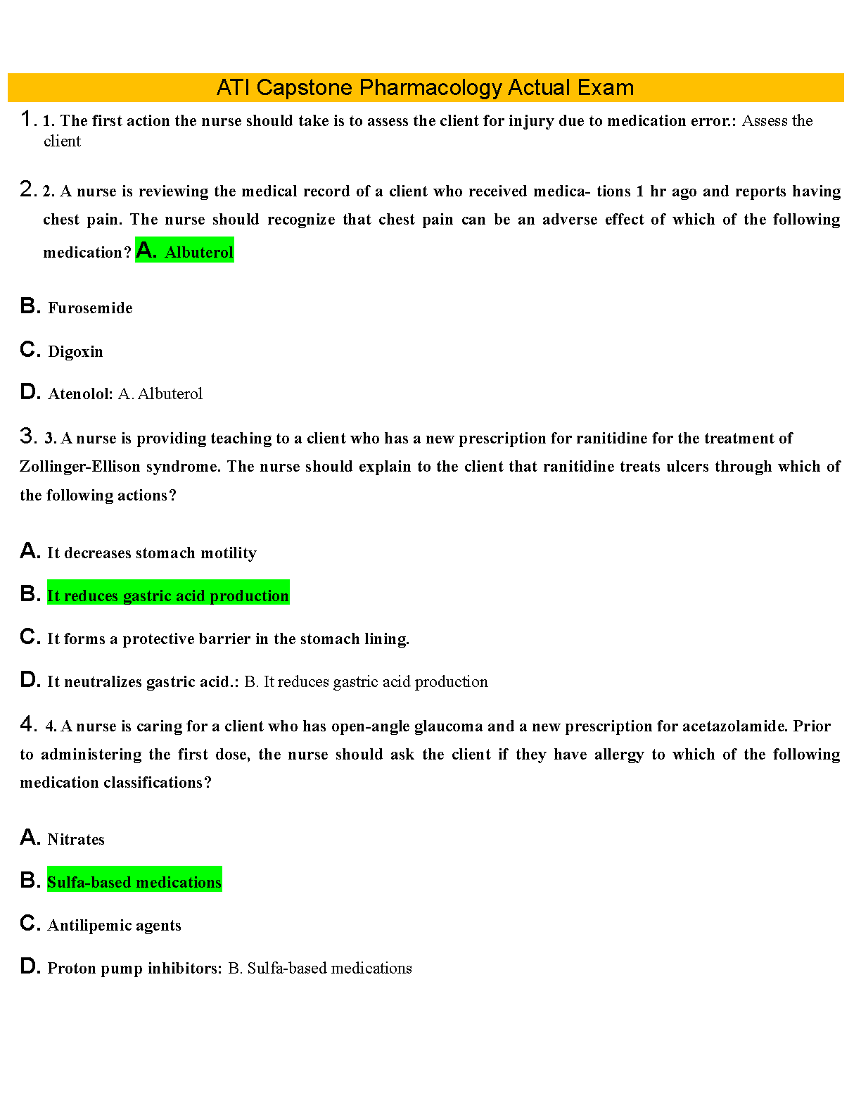ATI Capstone Pharmacology Actual Exam: Acetazolamide, Ranitidine, Albuterol, and Furosemide by ATI