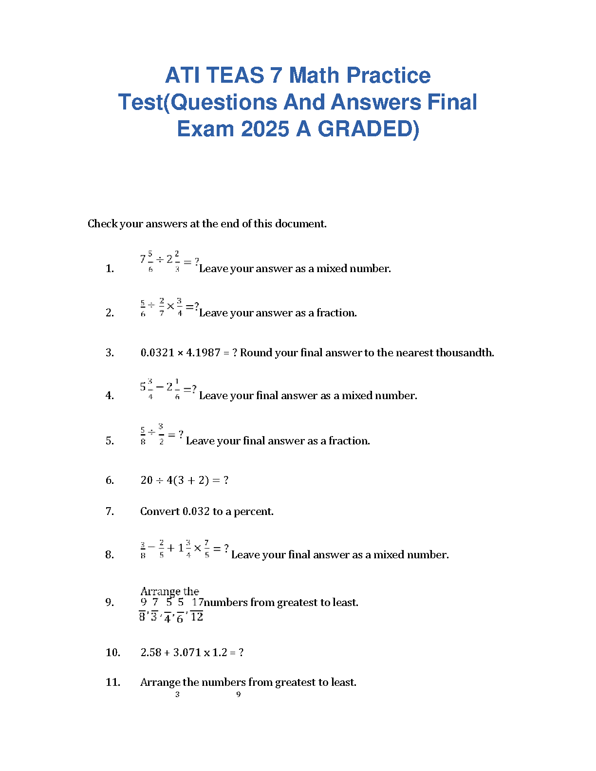 Ace the ATI TEAS 7 Math section with this comprehensive practice test. This 2025 edition provides a graded final exam with answers, helping students master key concepts and boost their scores. Ideal for first-time test takers, this resource guarantees exam success and avoids resits.