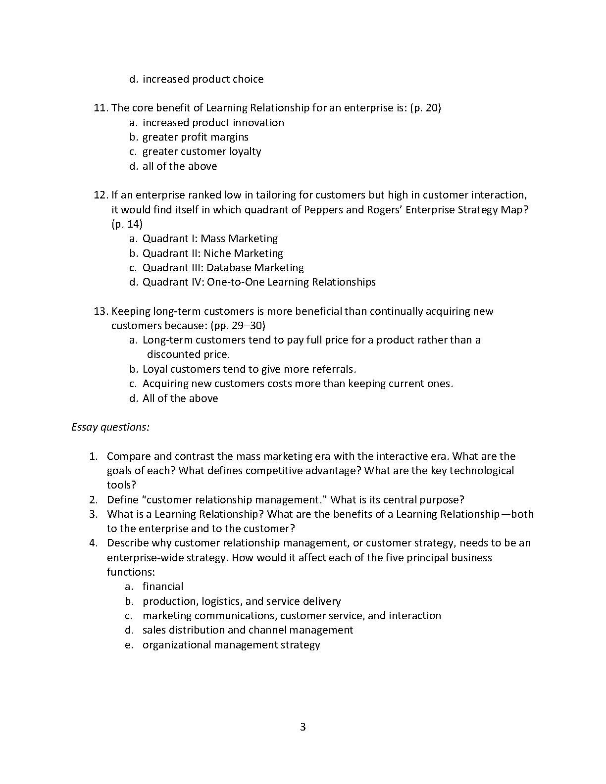 Access this comprehensive test bank for "Managing Customer Experience and Relationships: A Strategic Framework, 4th Edition" by Don Peppers and Martha Rogers. Prepare effectively for exams and boost your understanding of customer relationship management (CRM) strategies.
