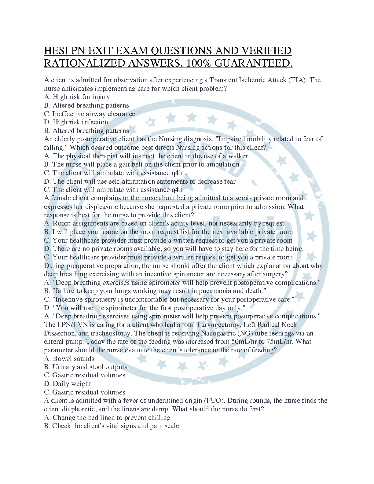 HESI PN Exit Exam Questions and Verified Rationalized Answers by [Author Names not found in provided text. Further online research needed to find complete author names.] - 2024/2025 Edition