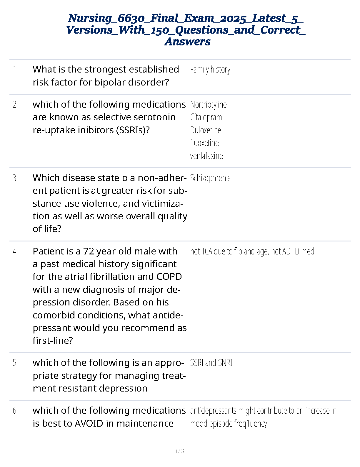 Nursing 6630 Final Exam 2025: Latest 5 Versions with 150 Questions and Answers by Unknown Author