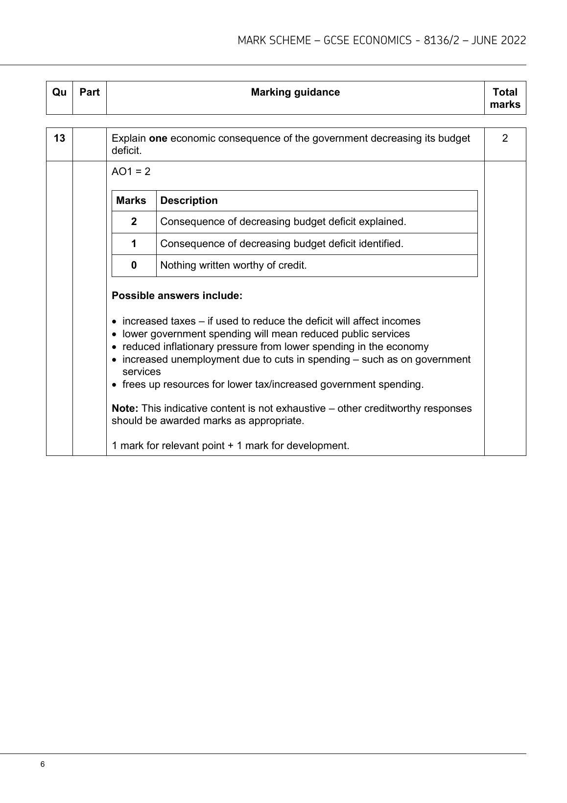AQA GCSE ECONOMICS PAPER 2 JUNE 2022 MARK SCHEME (8136/2: How the Economy Works)