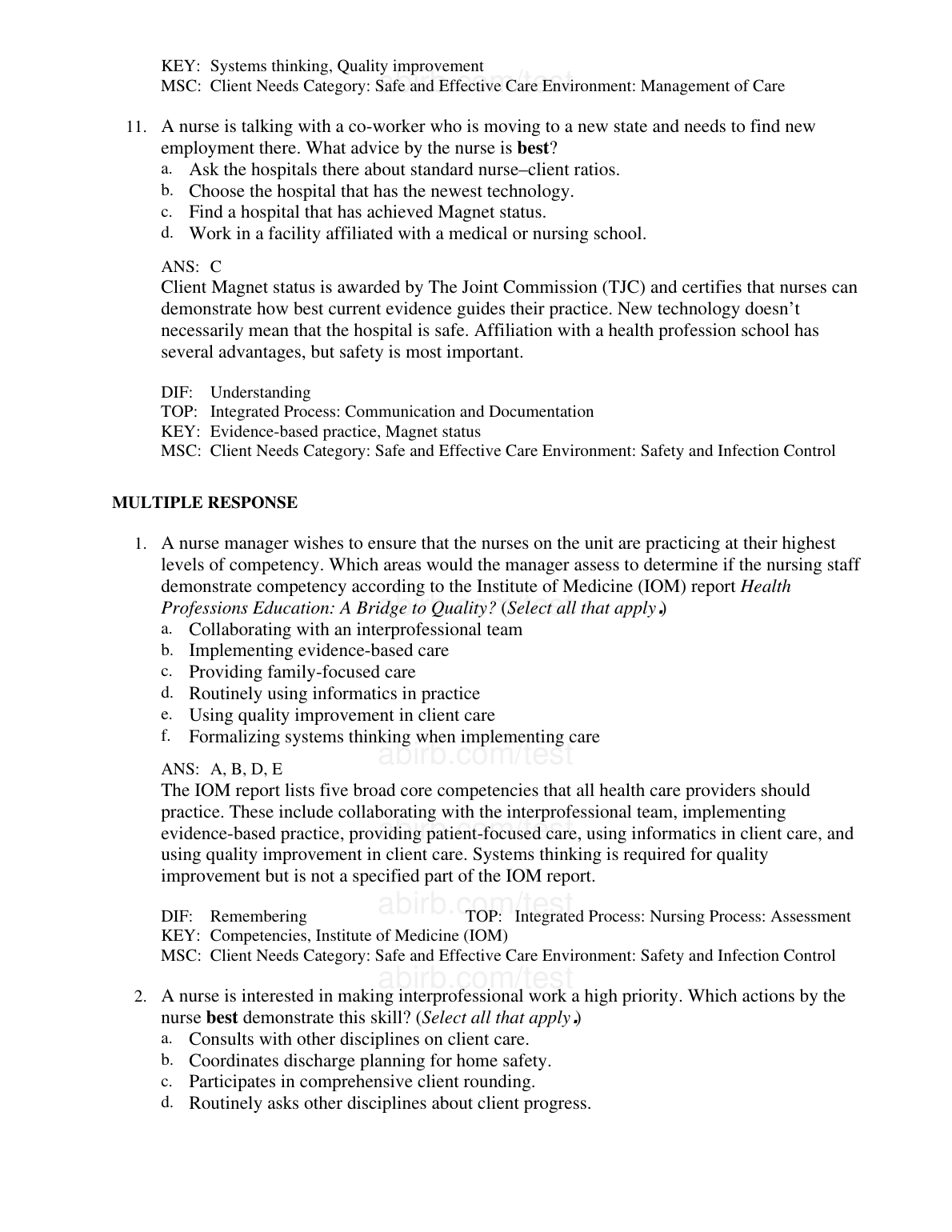 MED SURG Chapter 01: Overview of Professional Nursing Concepts for Medical-Surgical Nursing Ignatavicius: Medical-Surgical Nursing, 10th Edition. DOWNLOAD on www.hackedexams.com INSTANTLY.