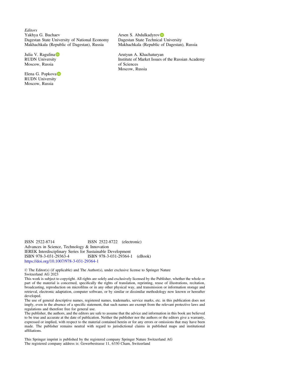 Challenges of the Modern Economy: Digital Technologies, Problems, and Focus Areas of Sustainable Development (1st Edition) by Yakhya G. Buchaev, Arsen S. Abdulkadyrov, Julia V. Ragulina, Arutyun A. Khachaturyan, and Elena G. Popkova