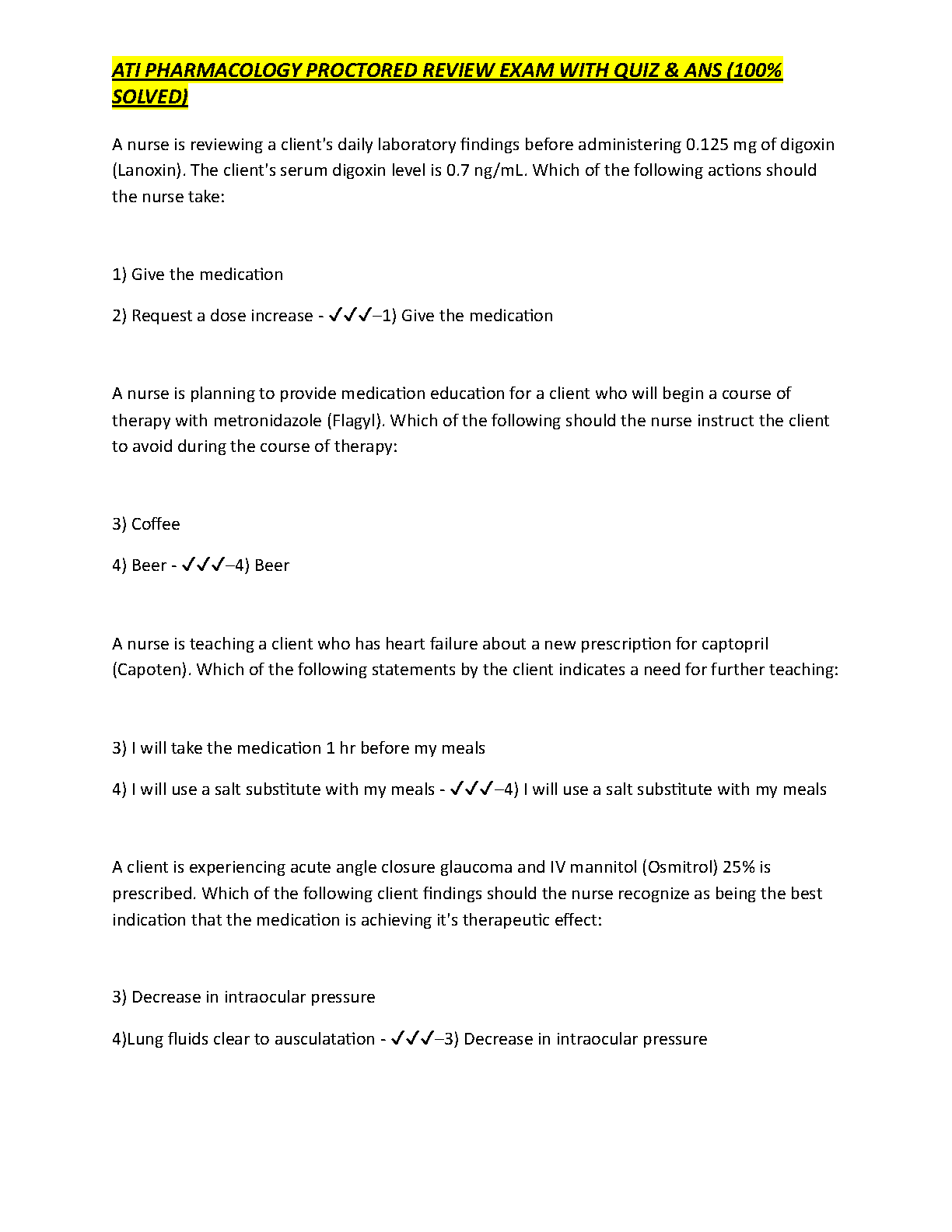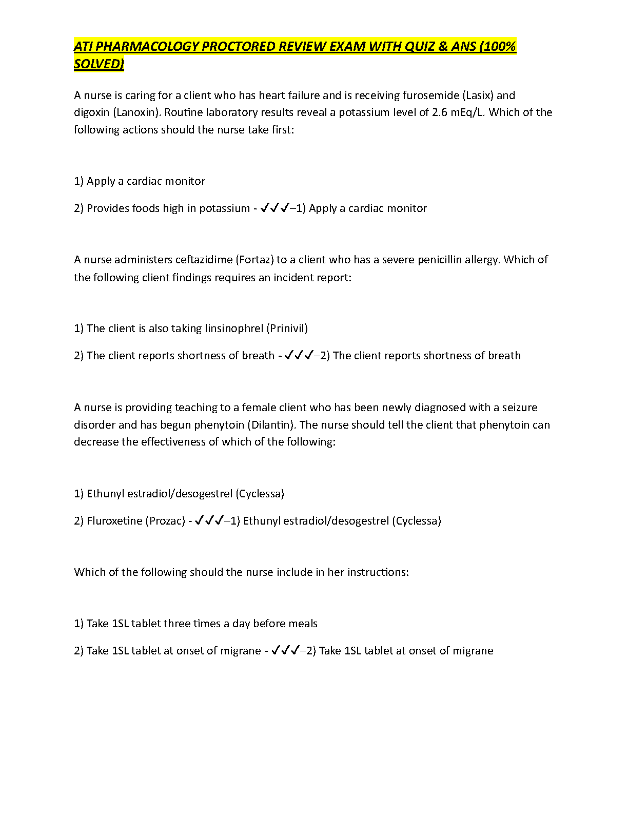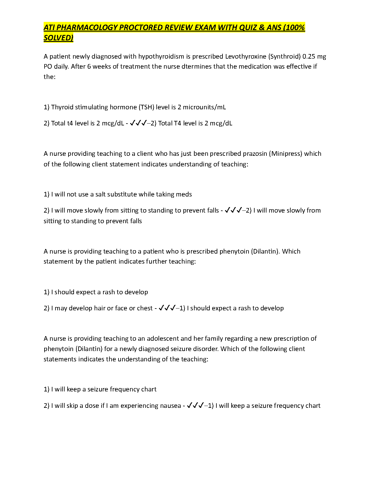 ATI Pharmacology Proctored Review Exam with Quiz & Answers (100% Solved) by ATI