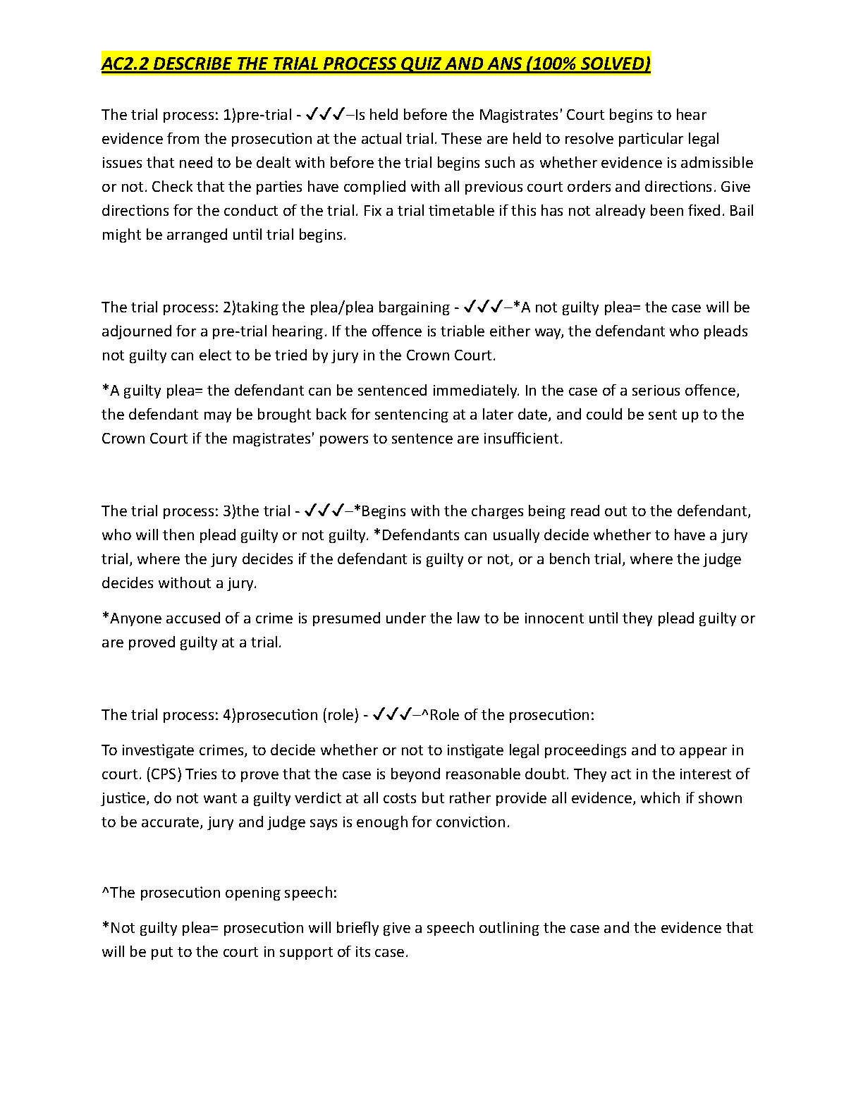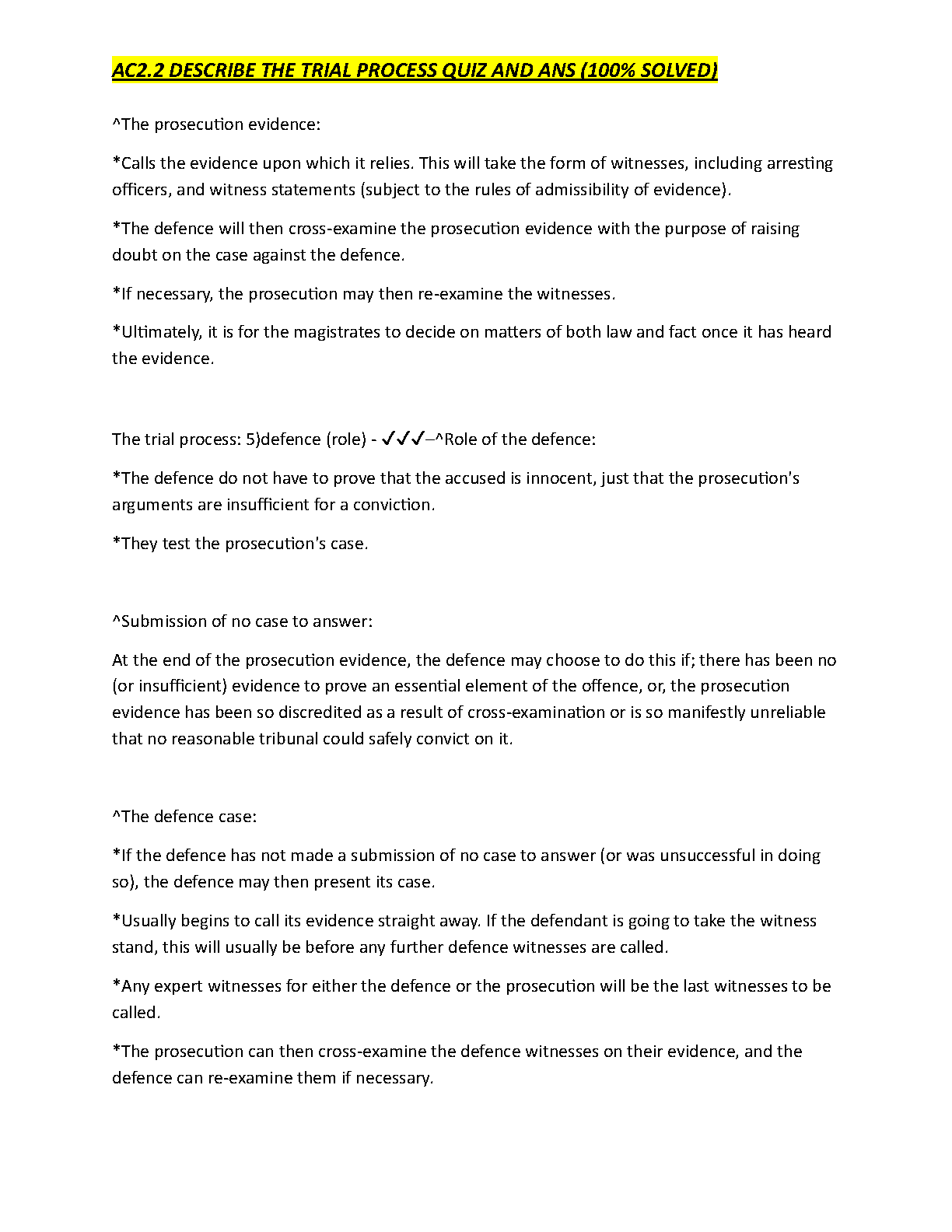 AC2.2 Describe the Trial Process Quiz and Answers (100% Solved)