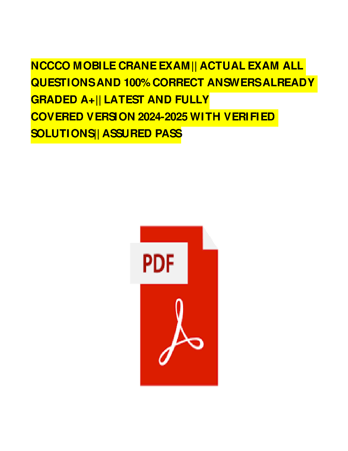 Ace your NCCCO Mobile Crane Exam with this comprehensive study guide. This 2024-2025 edition contains all the actual exam questions and 100% correct answers, already graded A+. It is the latest and fully covered version with verified solutions, ensuring a successful first attempt and avoiding resits.