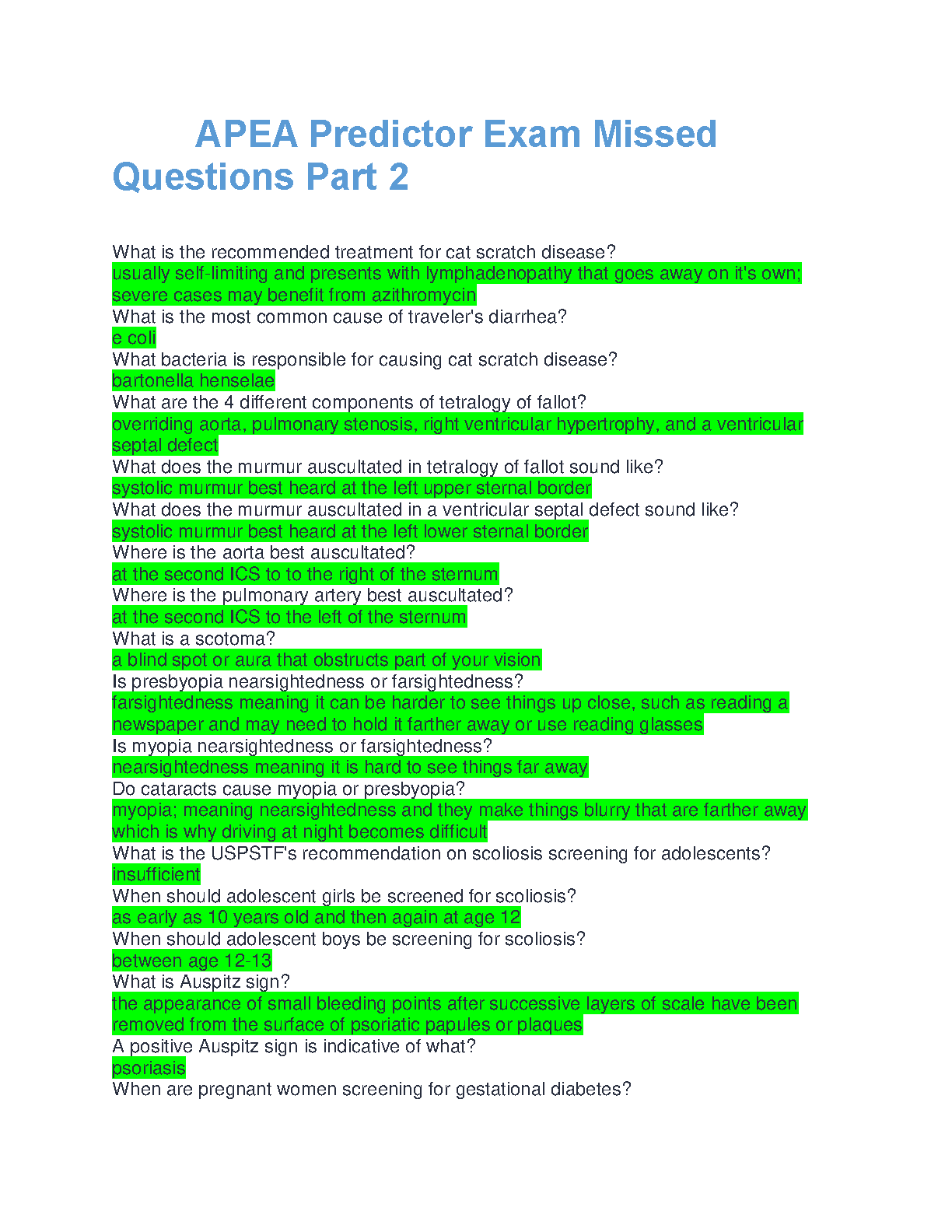 This comprehensive guide contains missed questions from the APEA predictor exam, part 2. Designed for the 2024-2025 academic year, it helps students master key concepts and ace their exams, avoiding resits.