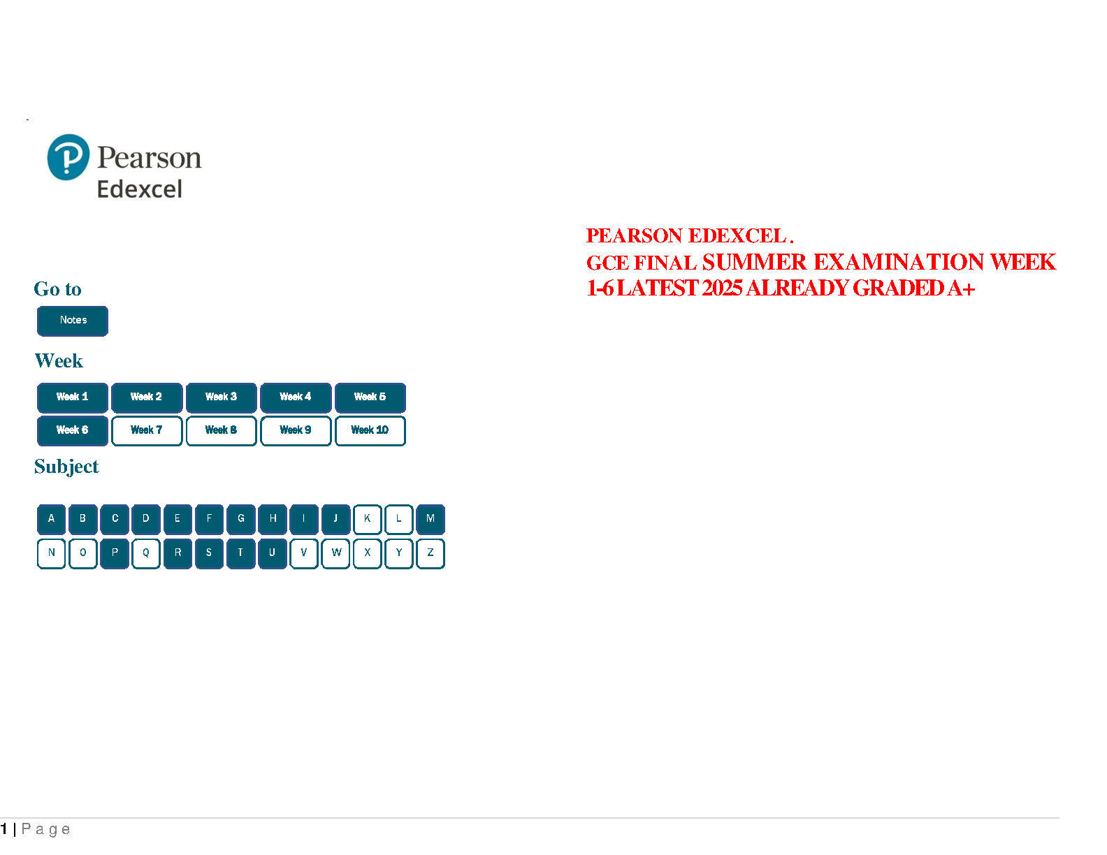 Pearson Edexcel GCE Final Summer Examination Weeks 1-6: Latest 2025 Edition Already Graded A+