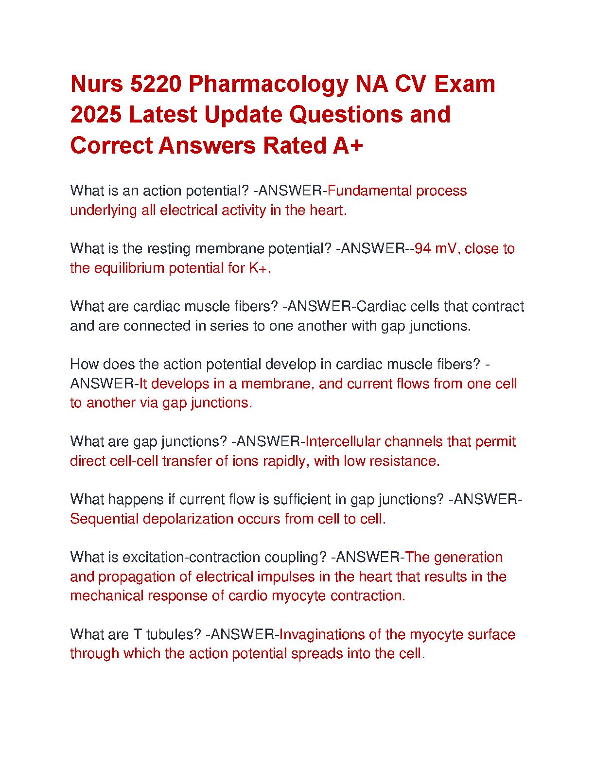 Ace your Nurs 5220 Pharmacology NA CV Exam with this comprehensive 2025 question and answer bank. Get the latest updates and achieve an A+ grade. Avoid resits and pass on your first attempt!