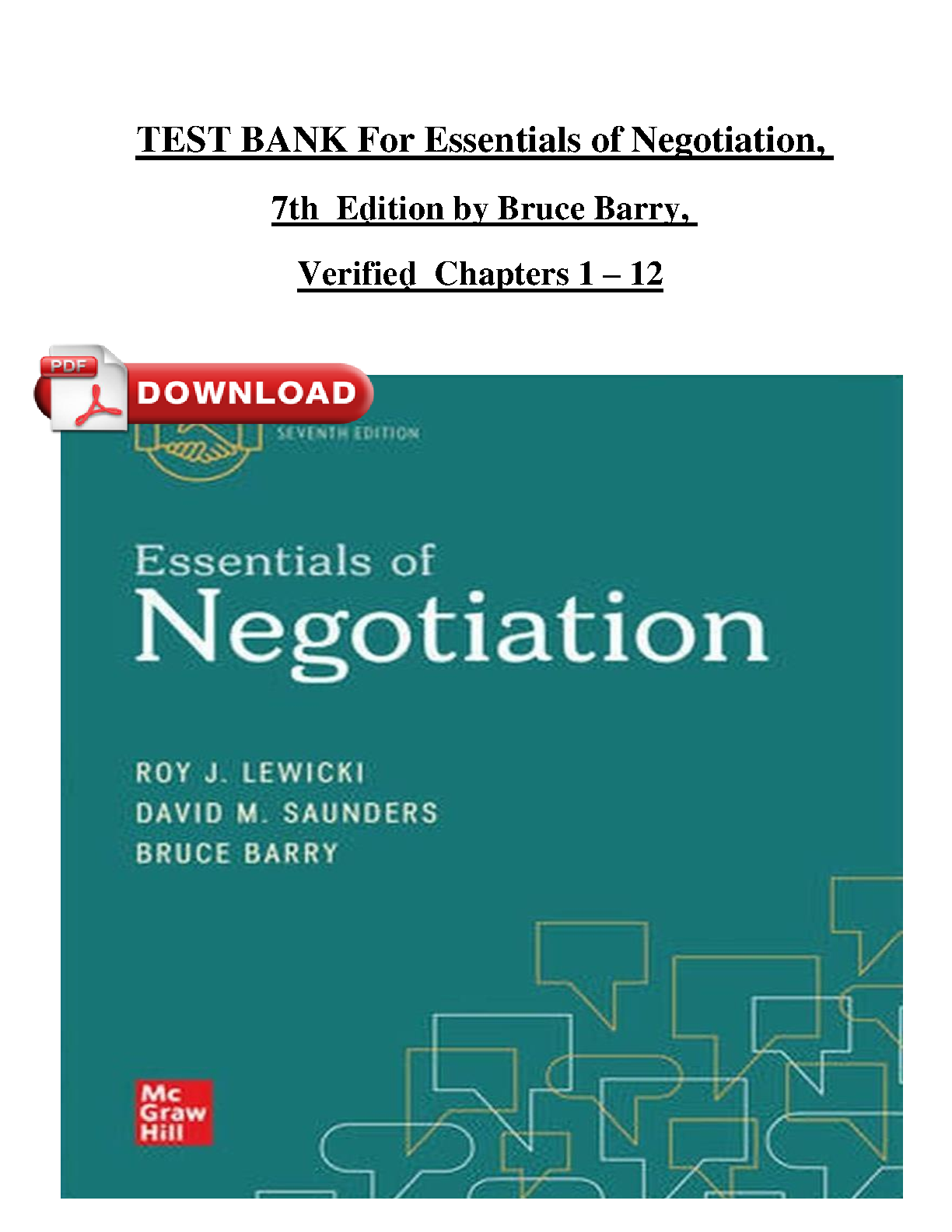 Ace your Essentials of Negotiation course with this comprehensive 7th edition test bank. Verified solutions for chapters 1-12 ensure exam success on your first try, eliminating the need for resits.