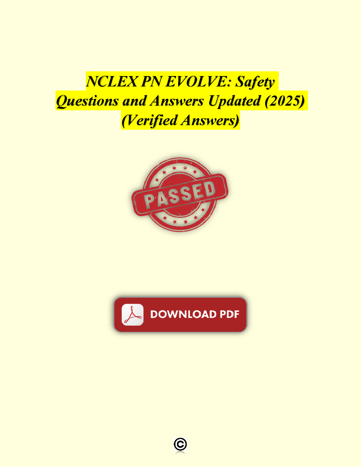 Ace your NCLEX-PN exam with this updated 2025 edition of safety questions and answers. Verified answers ensure you're well-prepared, avoiding resits and passing on your first attempt.