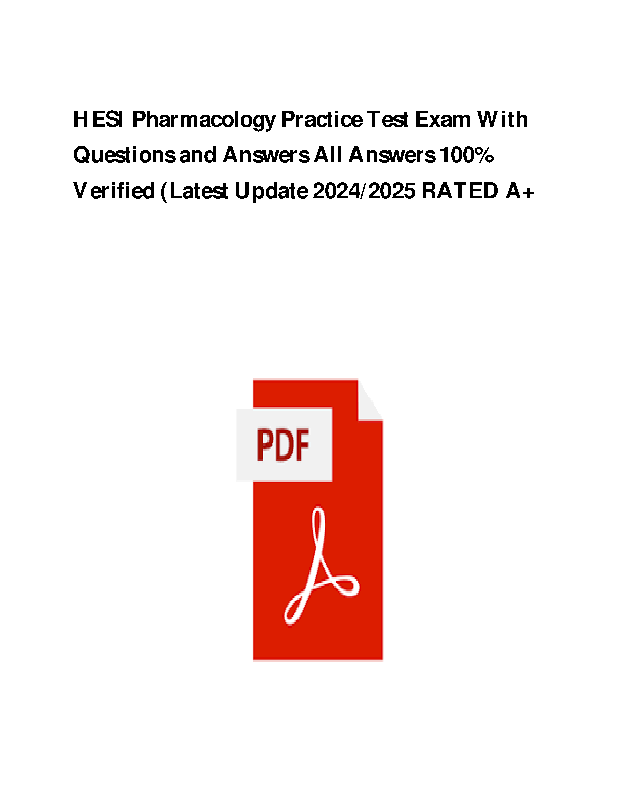 HESI Pharmacology Practice Test Exam 2024/2025: Questions and Answers with 100% Verified Solutions for Exam Success
