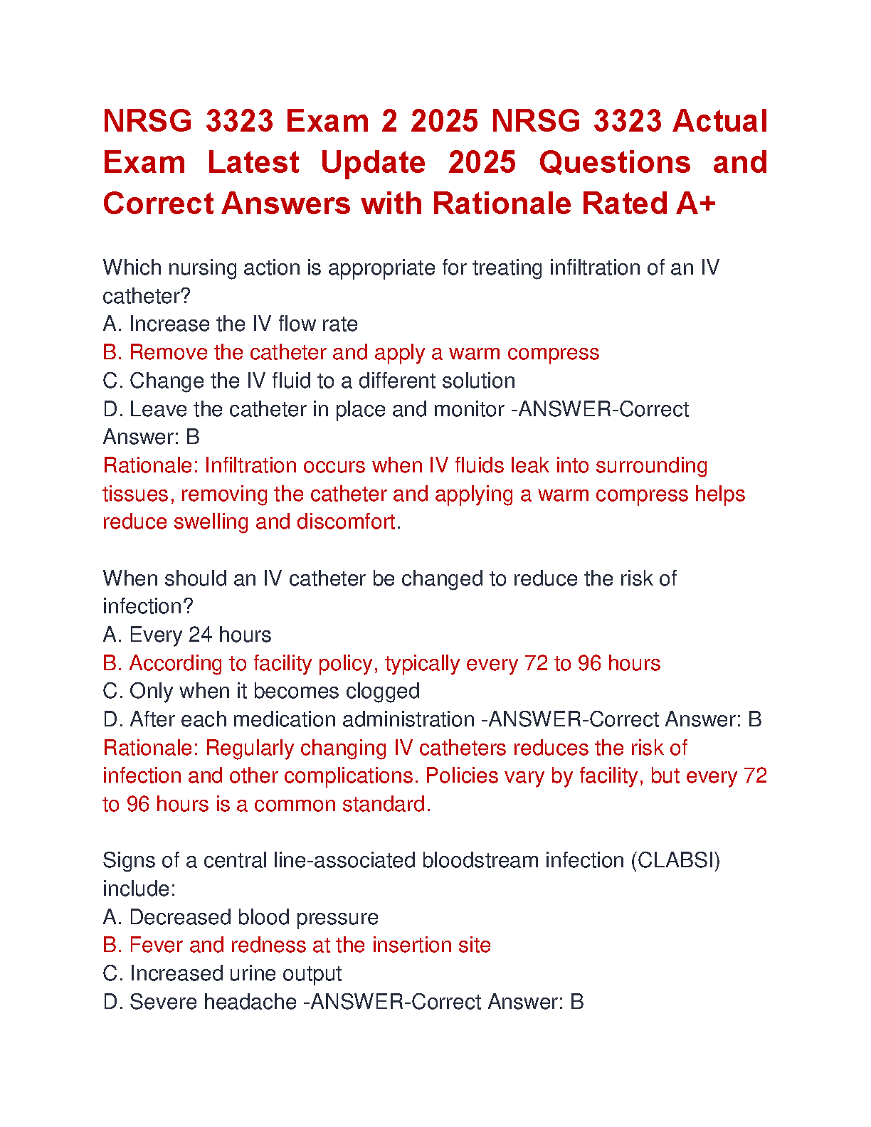 NRSG 3323 Exam 2025: Actual Exam Questions and Answers with Rationale by [Author's Name] - Latest Update