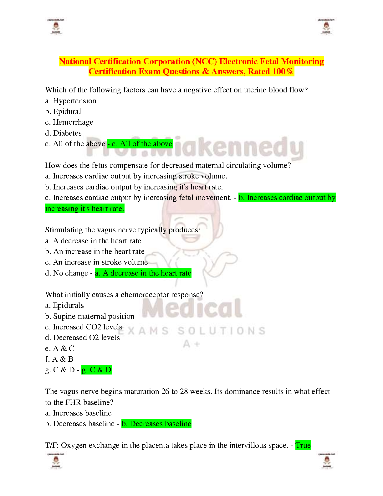 National Certification Corporation (NCC) Electronic Fetal Monitoring Certification Exam Questions & Answers 2024/2025 Edition: Ace Your Exam on the First Attempt
