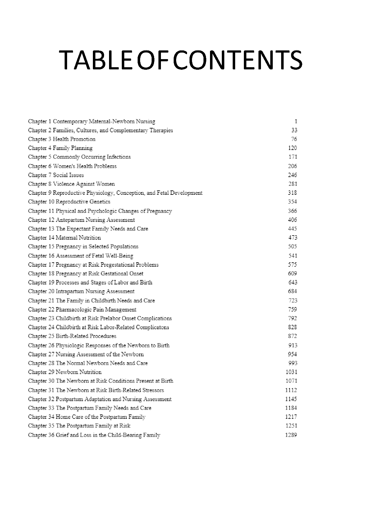 Ace your Maternal-Newborn Nursing exams with this comprehensive test bank for Olds' 11th Edition textbook. Covering all 36 chapters, this resource is designed to help you master the material and achieve exam success on your first attempt. All chapters have been verified for accuracy and completeness.