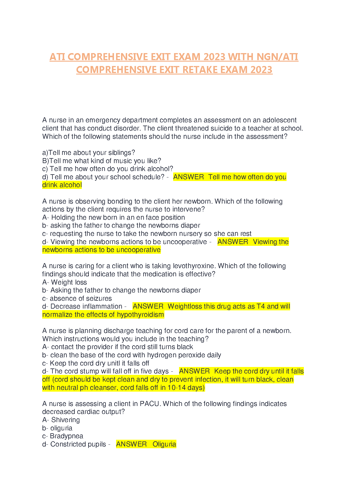 ATI Comprehensive Exit Exam 2023 with NGN/ATI Comprehensive Exit Retake Exam 2023: A Complete Guide for Success