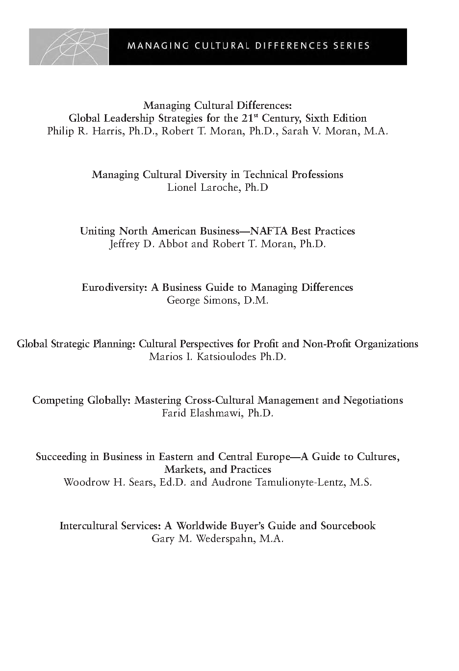 Managing Cultural Differences: Global Leadership Strategies, Sixth Edition, by Philip R. Harris, Robert T. Moran, and Sarah V. Moran