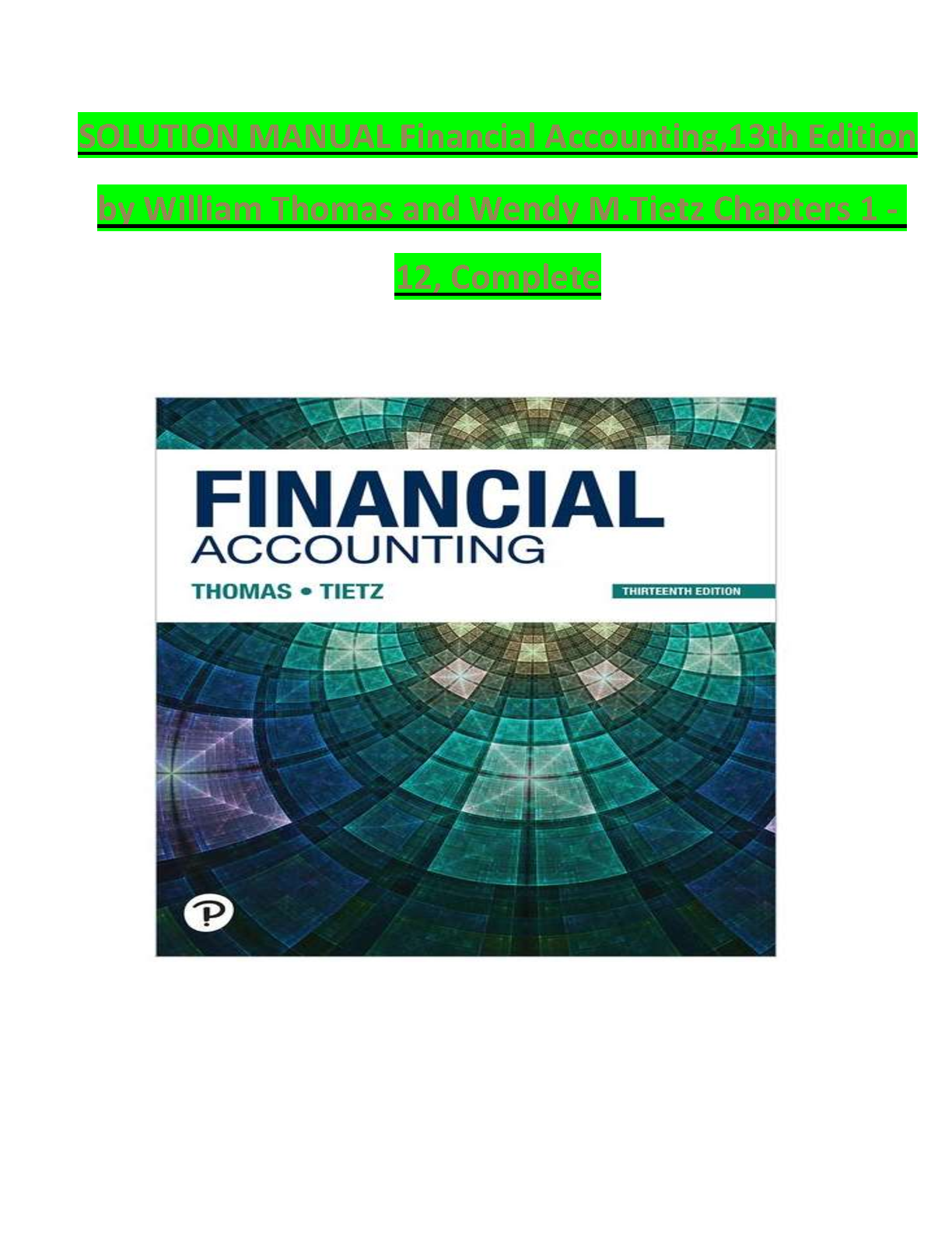 Ace your Financial Accounting course with this comprehensive solution manual for the 13th edition by William Thomas and Wendy Tietz. Covering chapters 1-12, this resource provides detailed solutions to help you master the concepts and excel in your exams. Get ready to achieve top grades and avoid resits! Perfect for the 2024/2025 academic year.