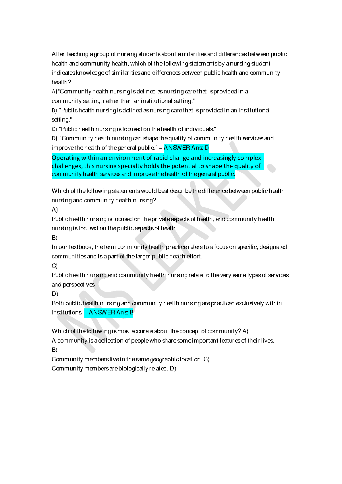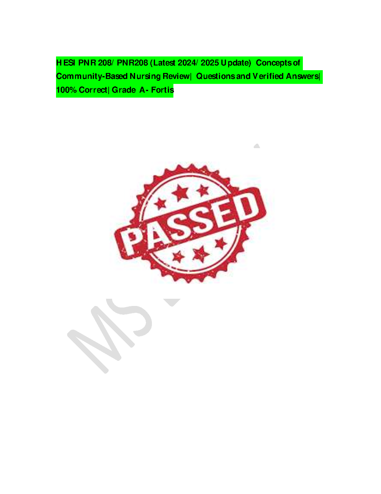 HESI PNR 208/PNR208 (Latest 2024/2025 Update) Concepts of Community-Based Nursing Review: Questions and Verified Answers by Fortis
