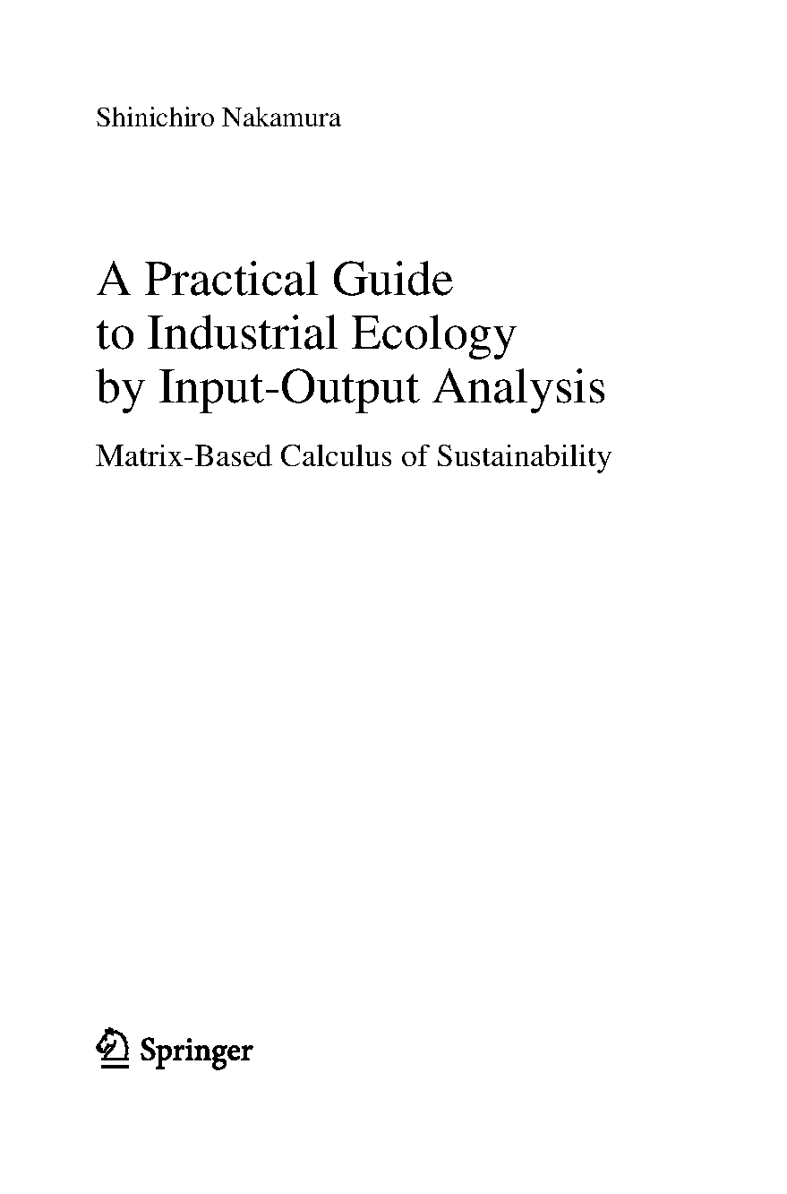 A Practical Guide to Industrial Ecology by Input-Output Analysis: Shinichiro Nakamura's 1st Edition