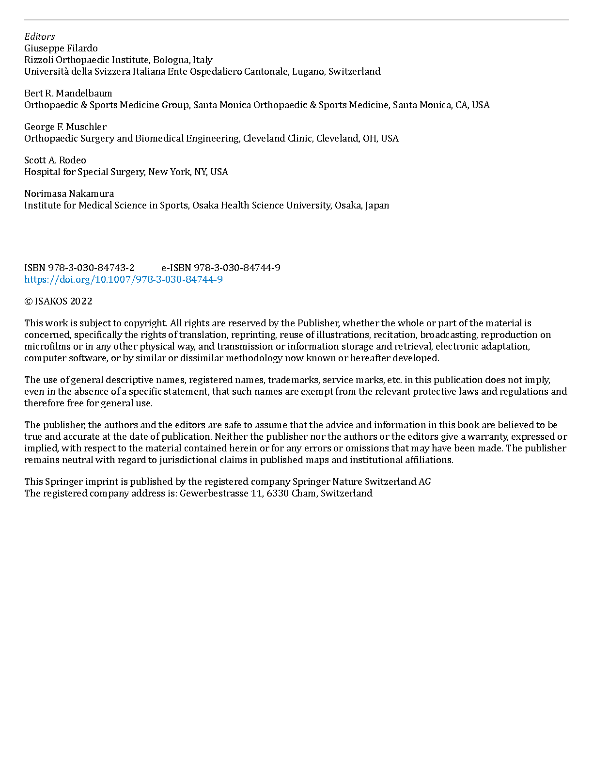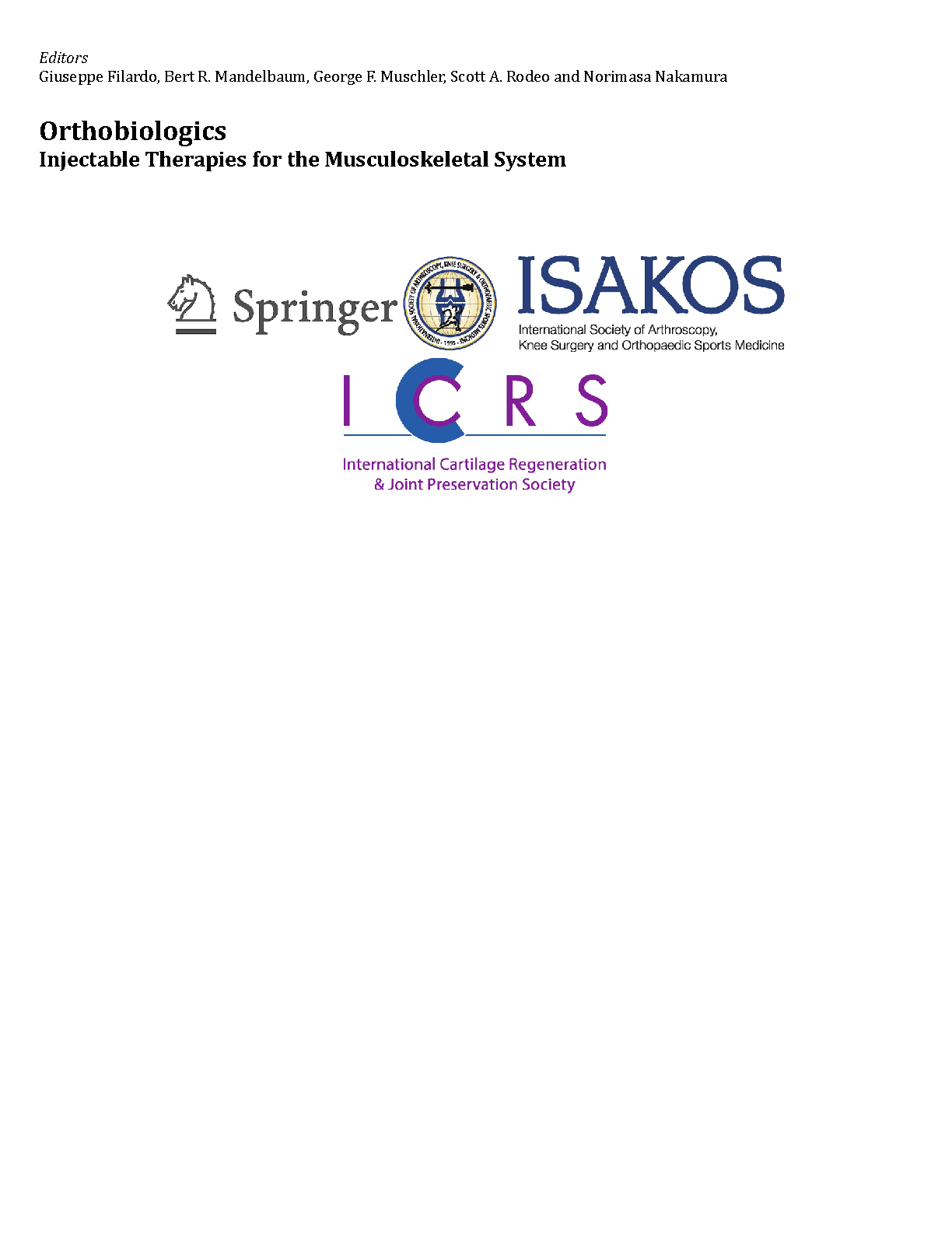 Orthobiologics: Injectable Therapies for the Musculoskeletal System - 1st Edition by Giuseppe Filardo, Bert R. Mandelbaum, George F. Muschler, Scott A. Rodeo, and Norimasa Nakamura