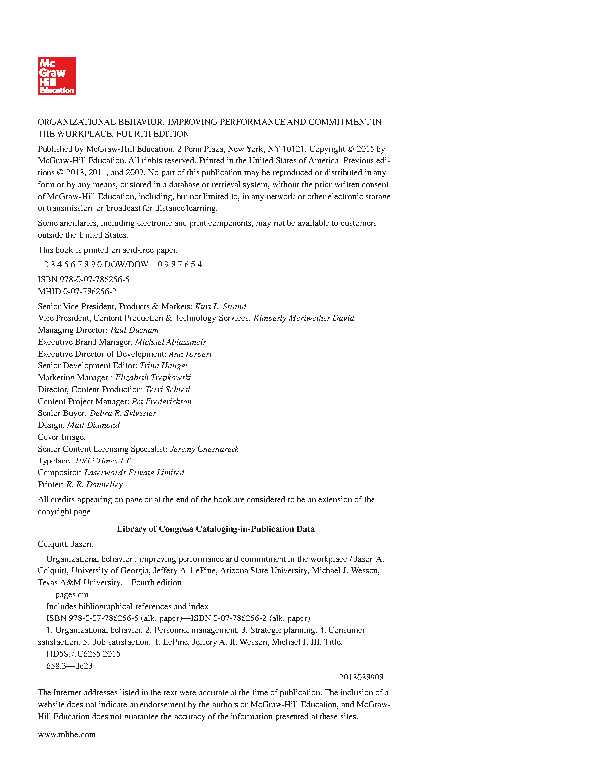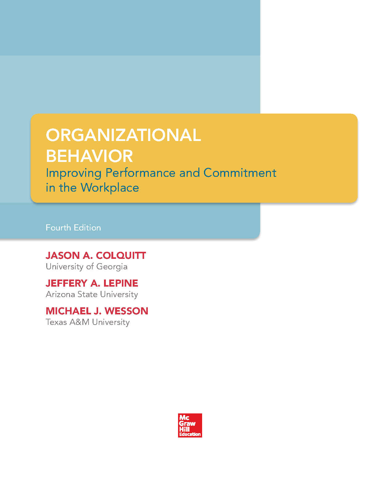 Organizational Behavior: Improving Performance and Commitment in the Workplace, Fourth Edition by Jason A. Colquitt, Jeffery A. Lepine, and Michael J. Wesson