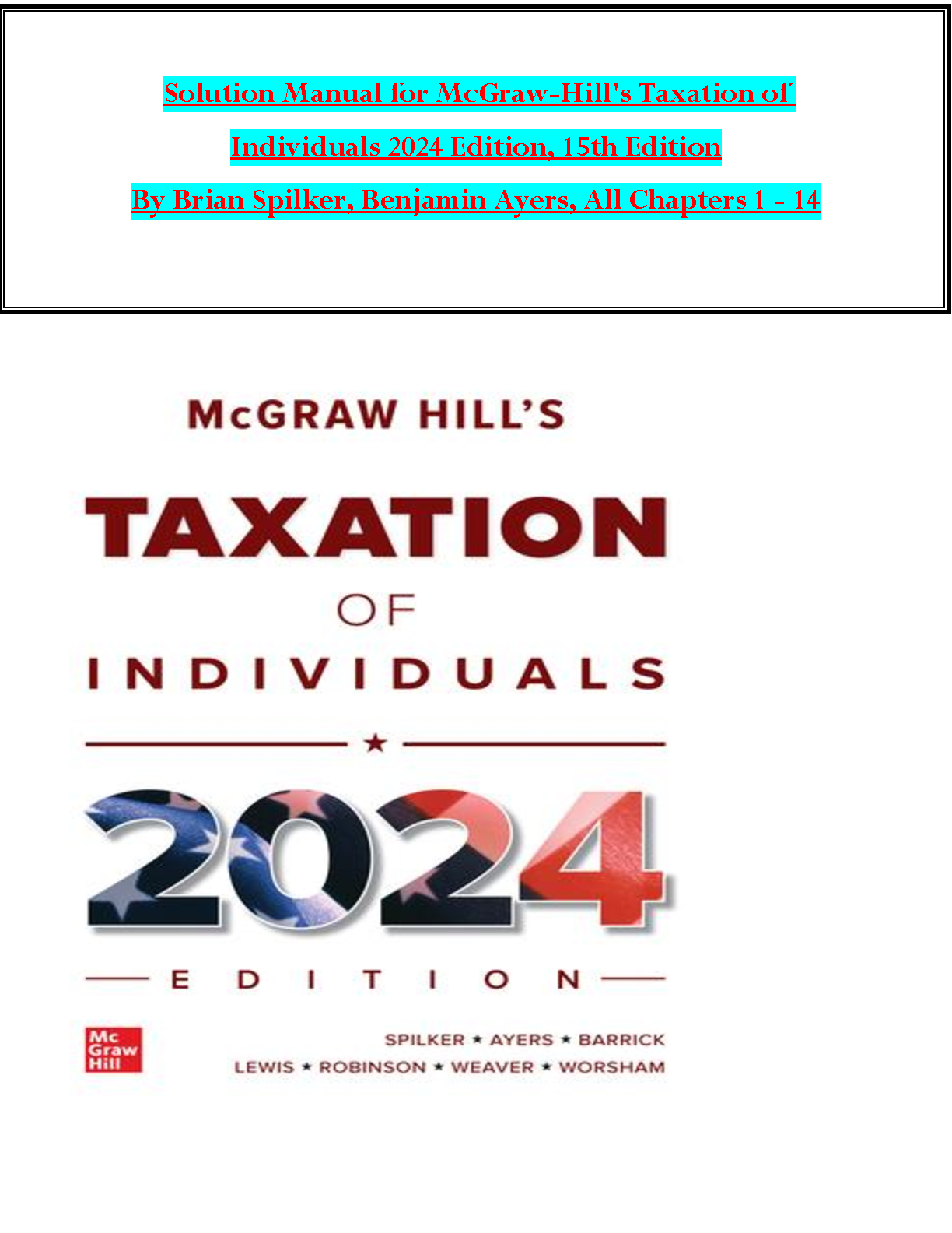 McGraw-Hill's Taxation of Individuals 2024 Edition Solution Manual by Brian Spilker, Benjamin Ayers, and others