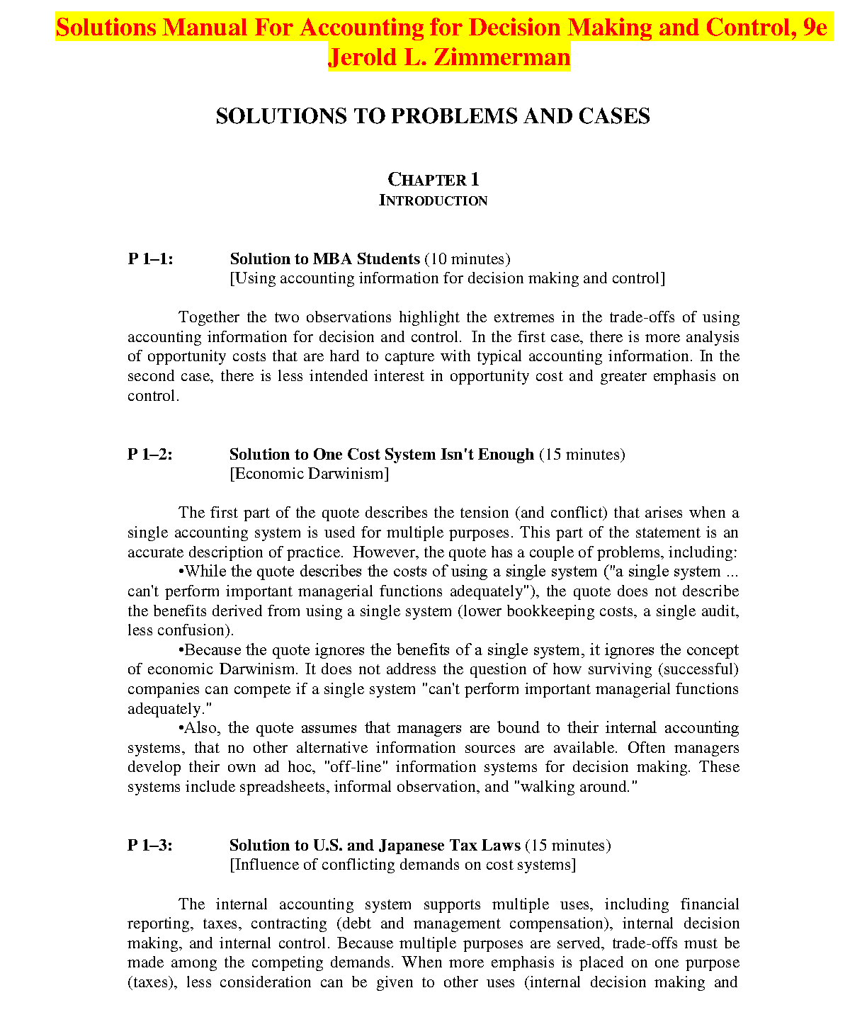 Solutions Manual for Accounting for Decision Making and Control, 9th Edition by Jerold L. Zimmerman
