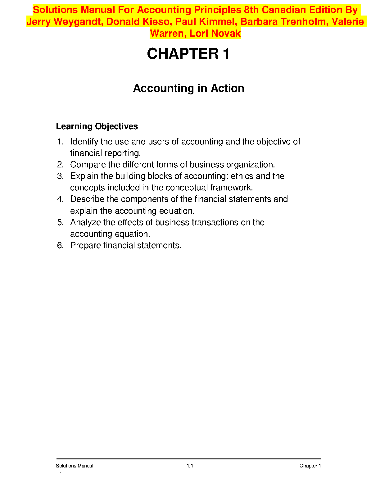 Accounting Principles 8th Canadian Edition Solutions Manual by Jerry Weygandt, Donald Kieso, Paul Kimmel, Barbara Trenholm, Valerie Warren, and Lori Novak
