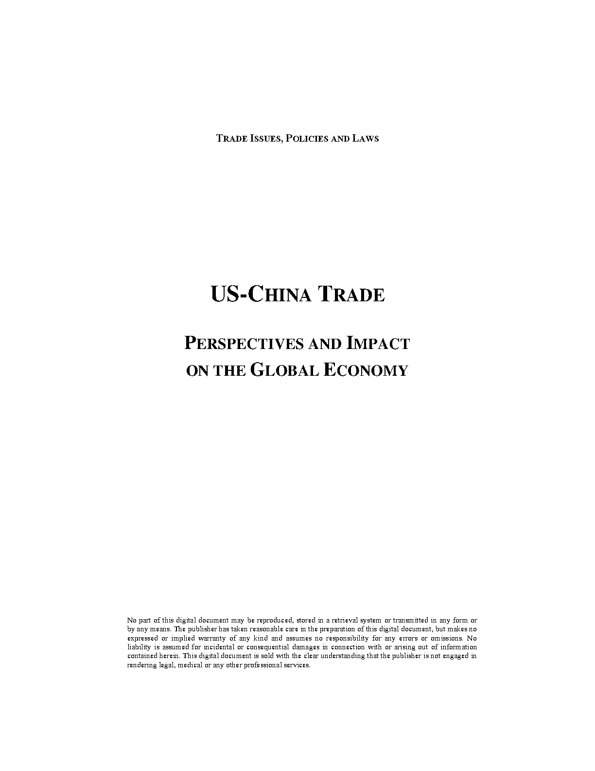 US-China Trade: Perspectives and Impact on the Global Economy (Edited by John C. Amon)