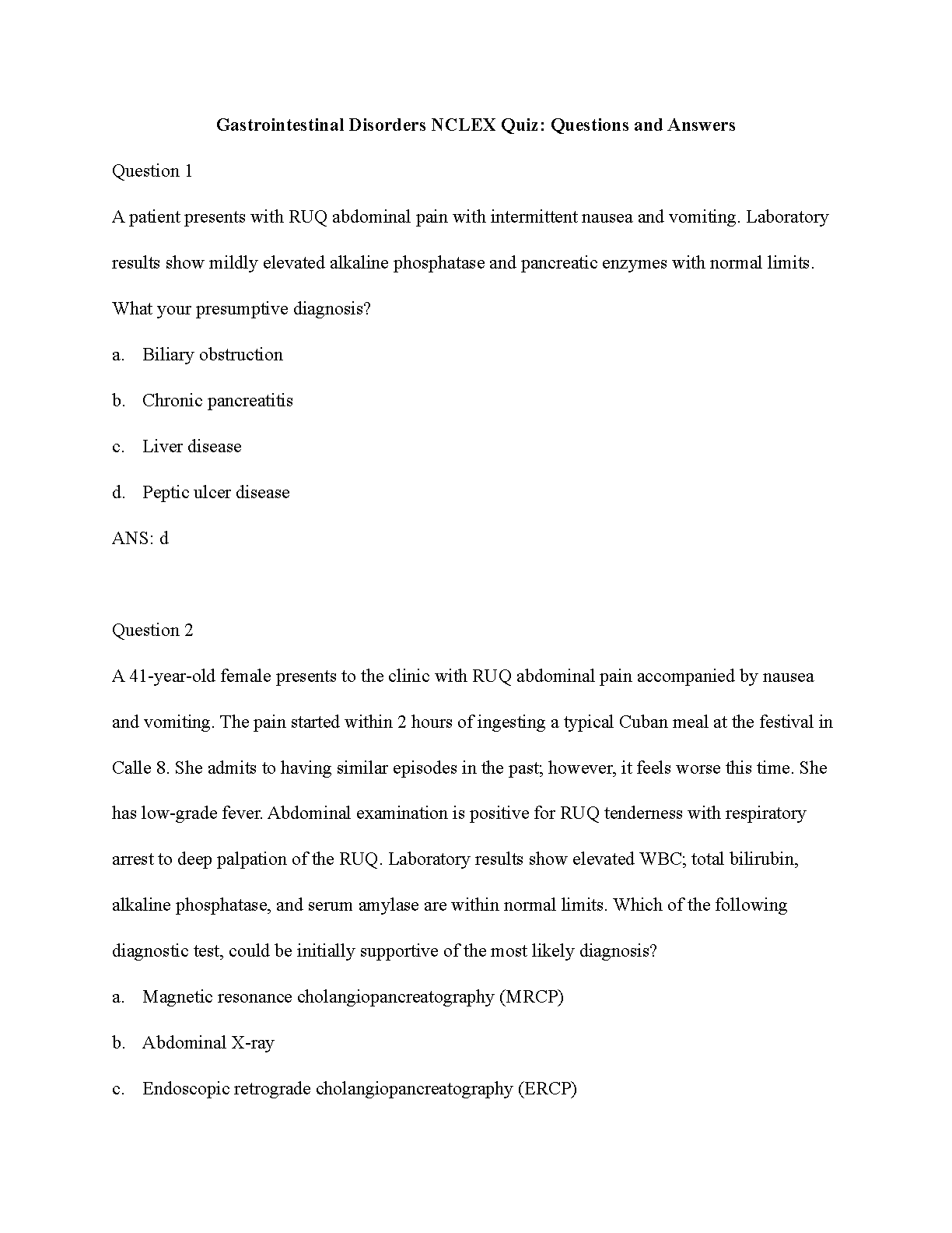 NCLEX Gastrointestinal Disorders Quiz: Questions and Answers by Unknown Author