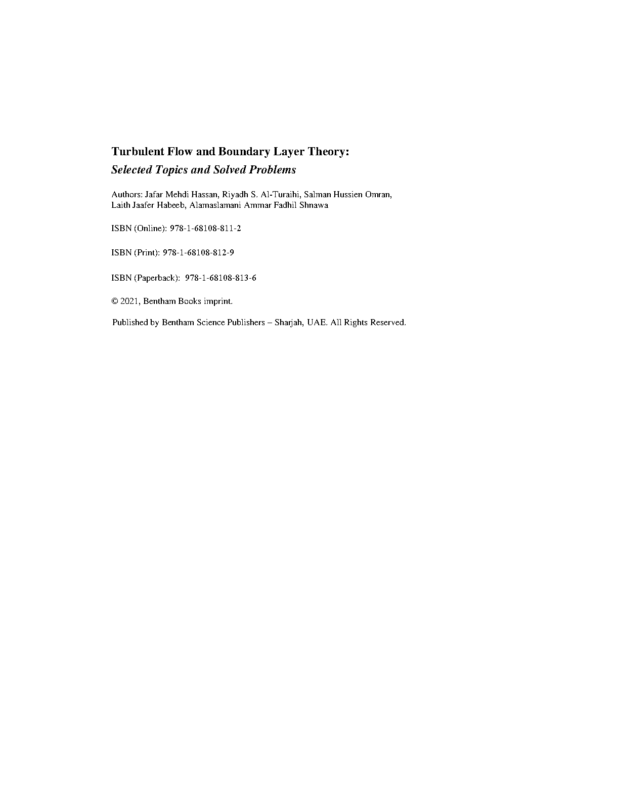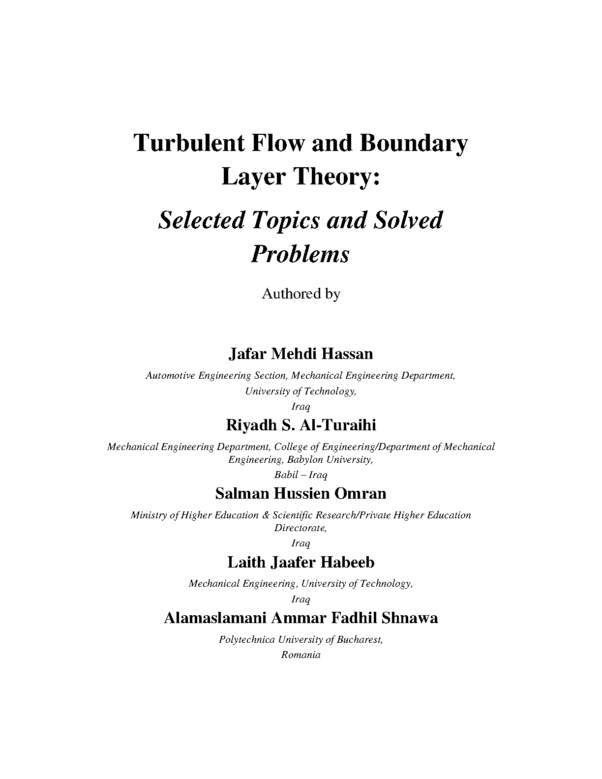 Turbulent Flow and Boundary Layer Theory: Selected Topics and Solved Problems by Jafar Mehdi Hassan, Riyadh S. Al-Turaihi, Salman Hussien Omran, Laith Jaafer Habeeb, and Alamaslamani Ammar Fadhil Shnawa