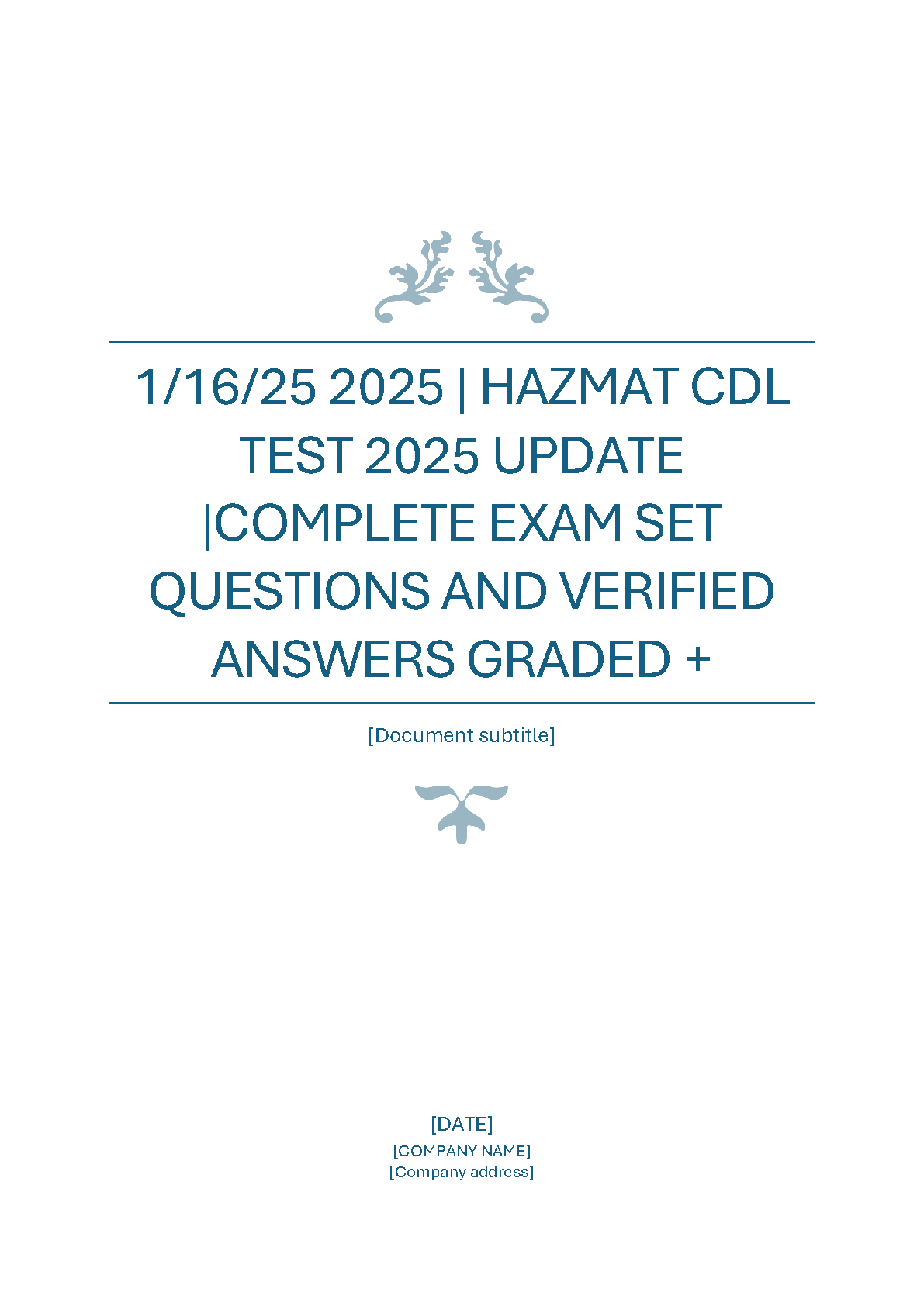 2025 HAZMAT CDL Test: Complete Exam Questions and Verified Answers with Graded Solutions