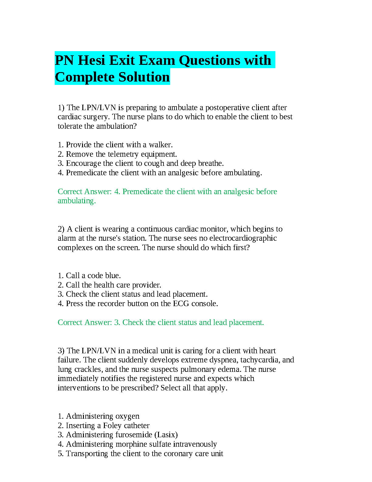 PN Hesi Exit Exam Questions with Complete Solution by Unknown Authors (2024/2025 Edition)