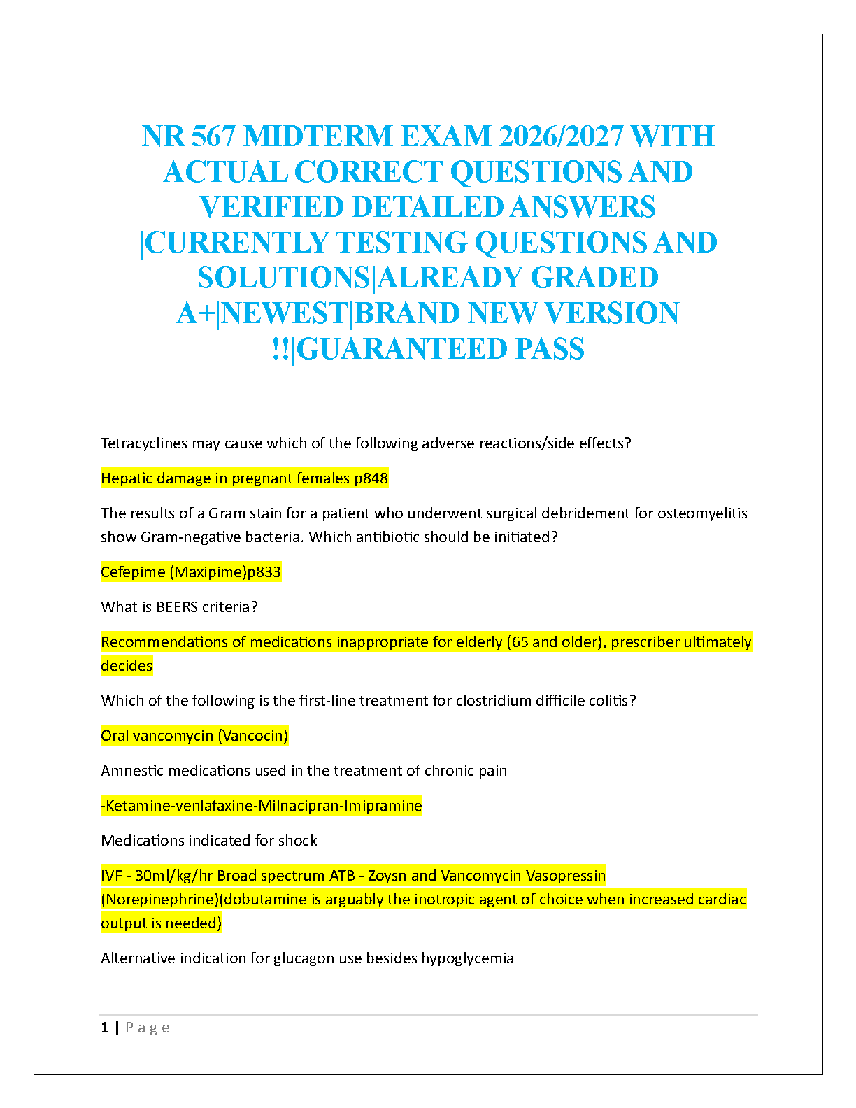 Conquer your NR 442 Exam 1 with this comprehensive study guide, meticulously crafted for the 2024-2025 academic year. Designed to help students master key concepts and ace their exams, avoiding resits. This invaluable resource covers all essential topics, providing a clear and concise path to success.
