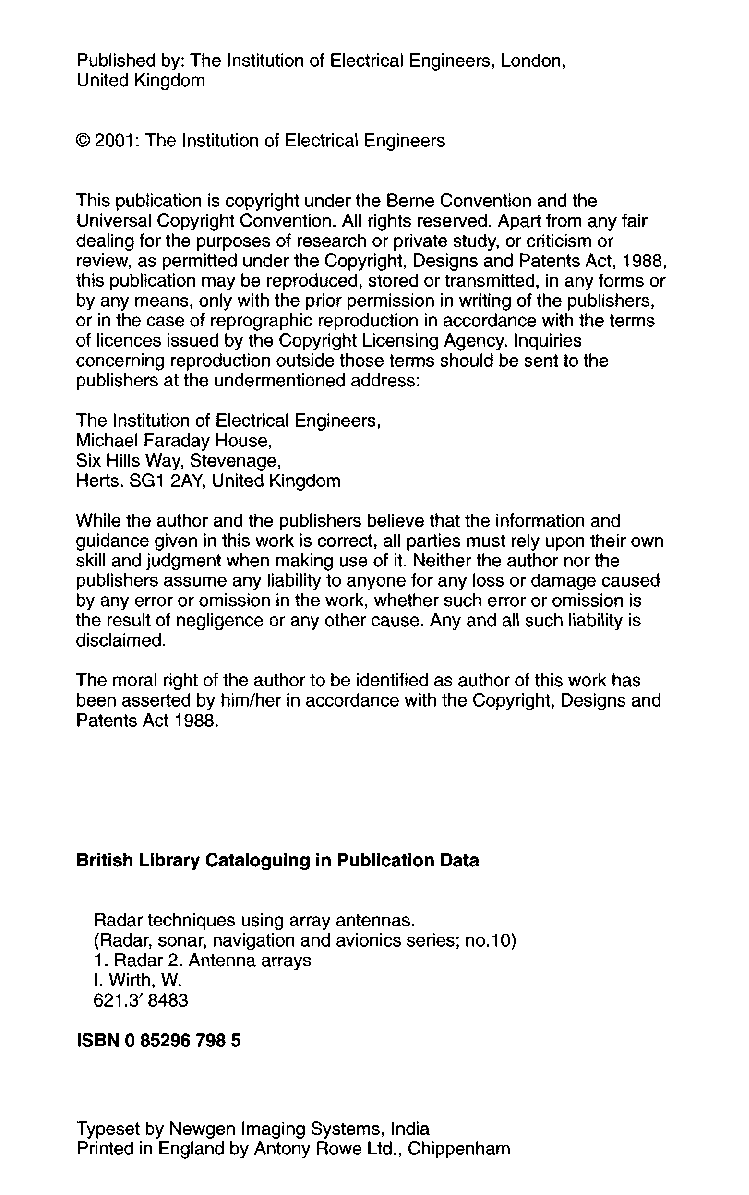 Radar Techniques Using Array Antennas by Wulf-Dieter Wirth - Series 10 Edition