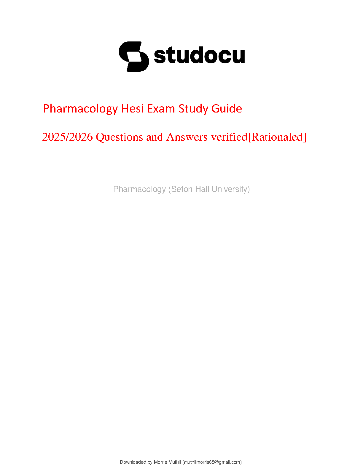 Ace your Pharmacology Hesi exam on the first try with this comprehensive study guide. This resource contains verified questions and answers for the 2025/2026 academic year, specifically tailored for Seton Hall University students. All answers include rationales for enhanced learning and understanding.
