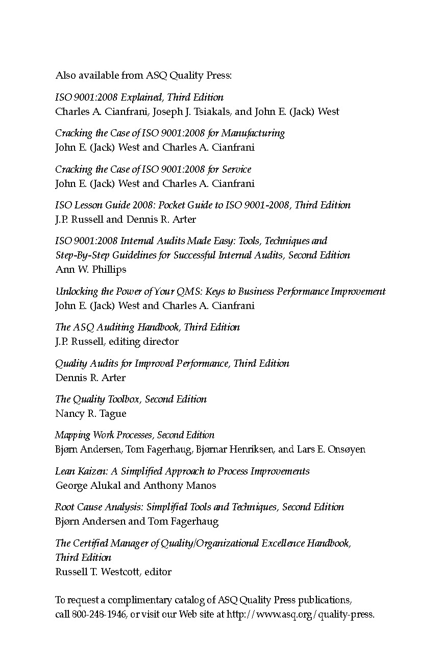 Master the art of auditing process-based QMS with this comprehensive guide. The second edition, written by Dennis R. Arter, Charles A. Cianfrani, and John E. (Jack) West, offers updated strategies and insights to help students excel in their exams and avoid resits. Prepare effectively for your assessments with this invaluable resource.