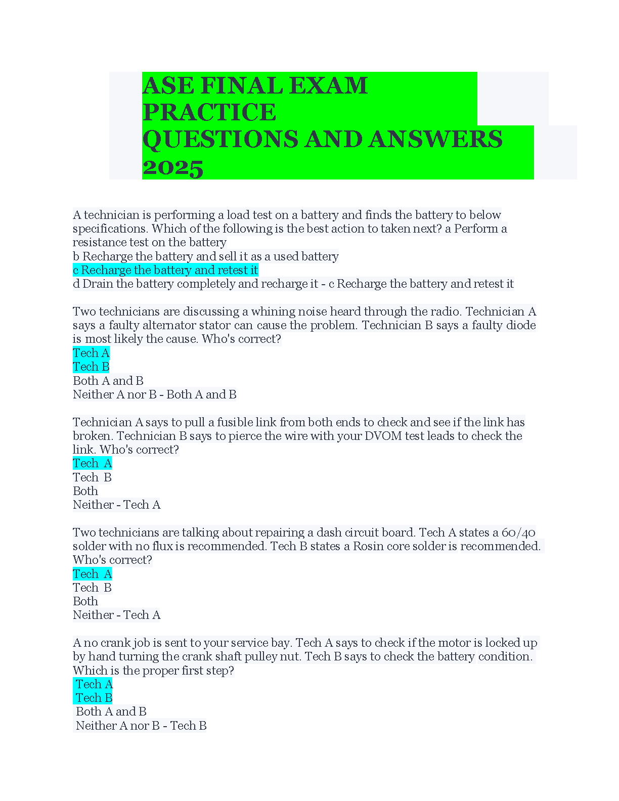 ASE Final Exam Practice Questions and Answers 2025 by Unknown Author