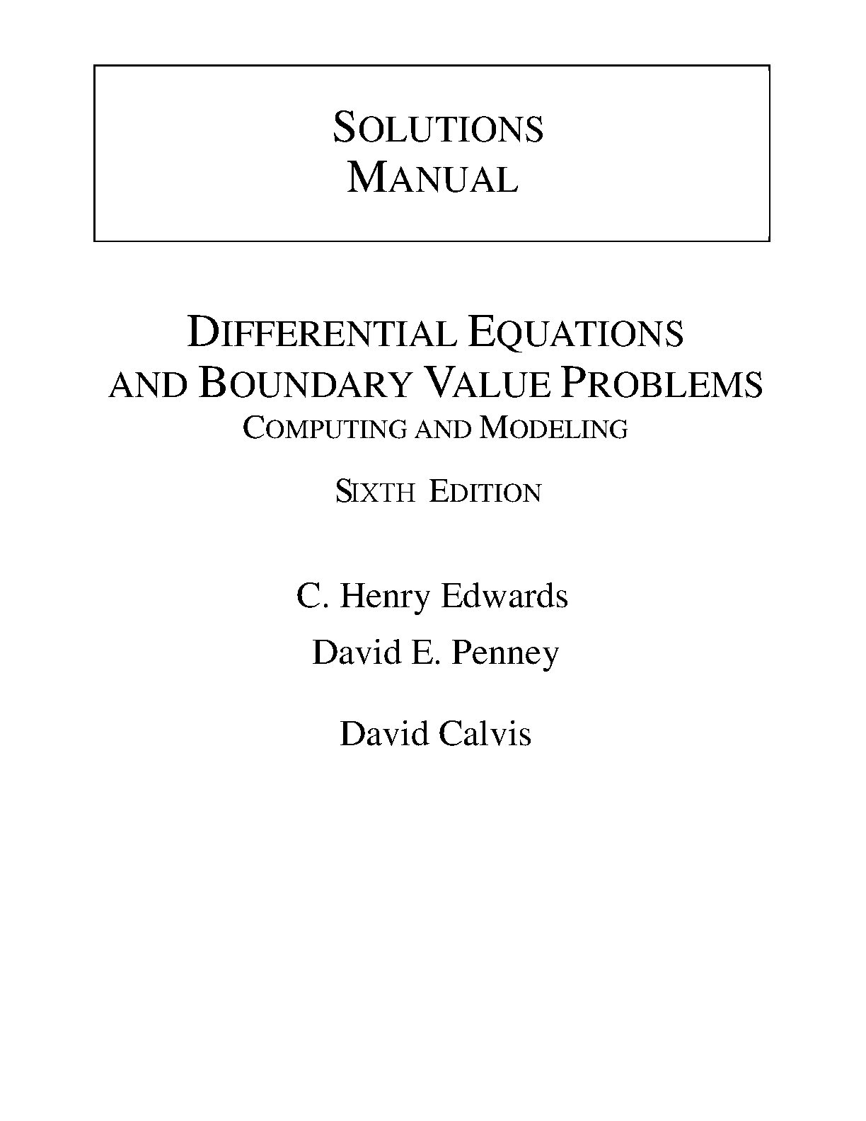 Solutions Manual for Differential Equations and Boundary Value Problems, Sixth Edition by C. Henry Edwards, David E. Penney, and David Calvis