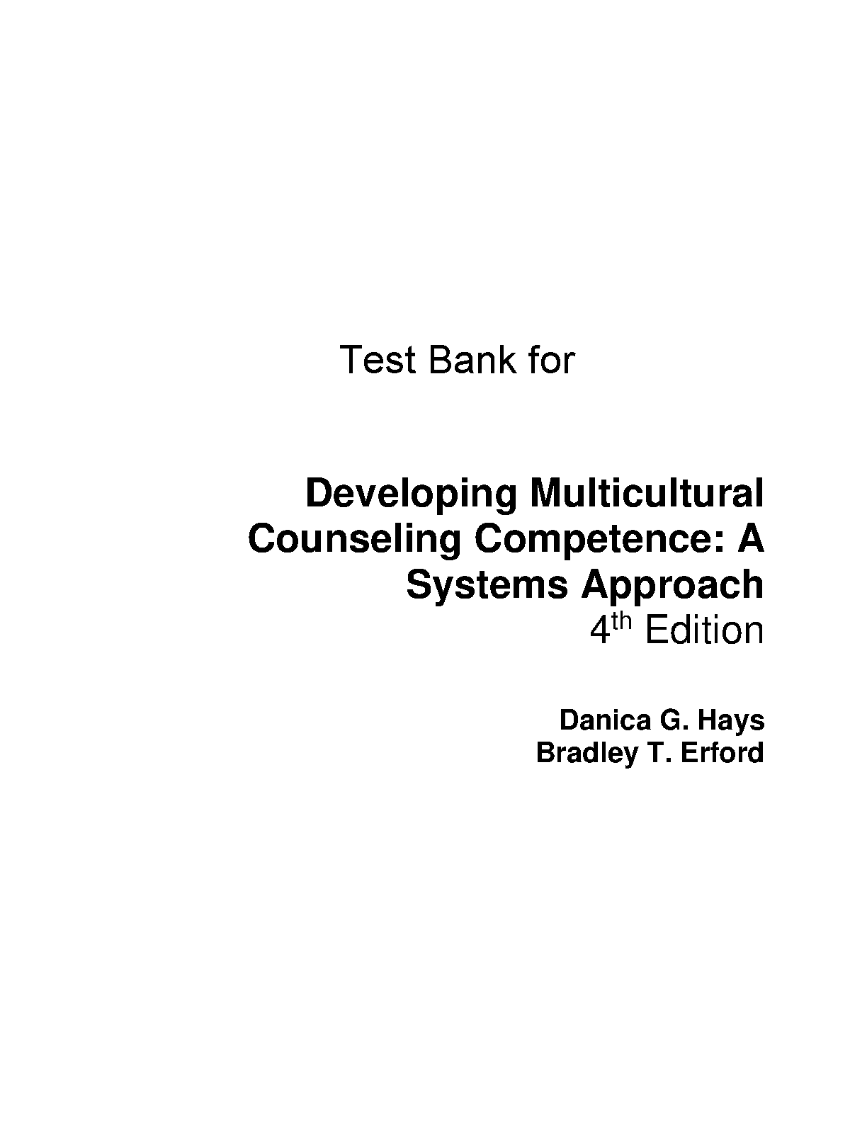 Test Bank for Developing Multicultural Counseling Competence: A Systems Approach, 4th Edition by Danica G. Hays and Bradley T. Erford