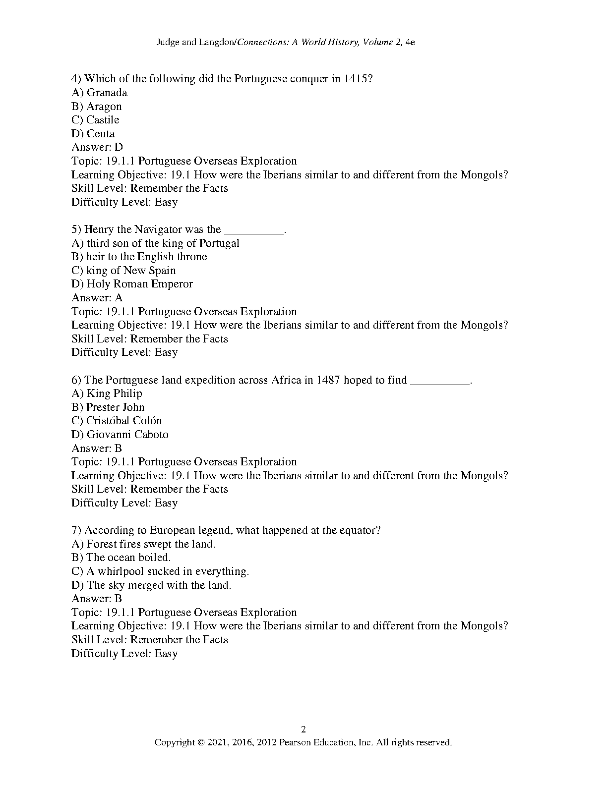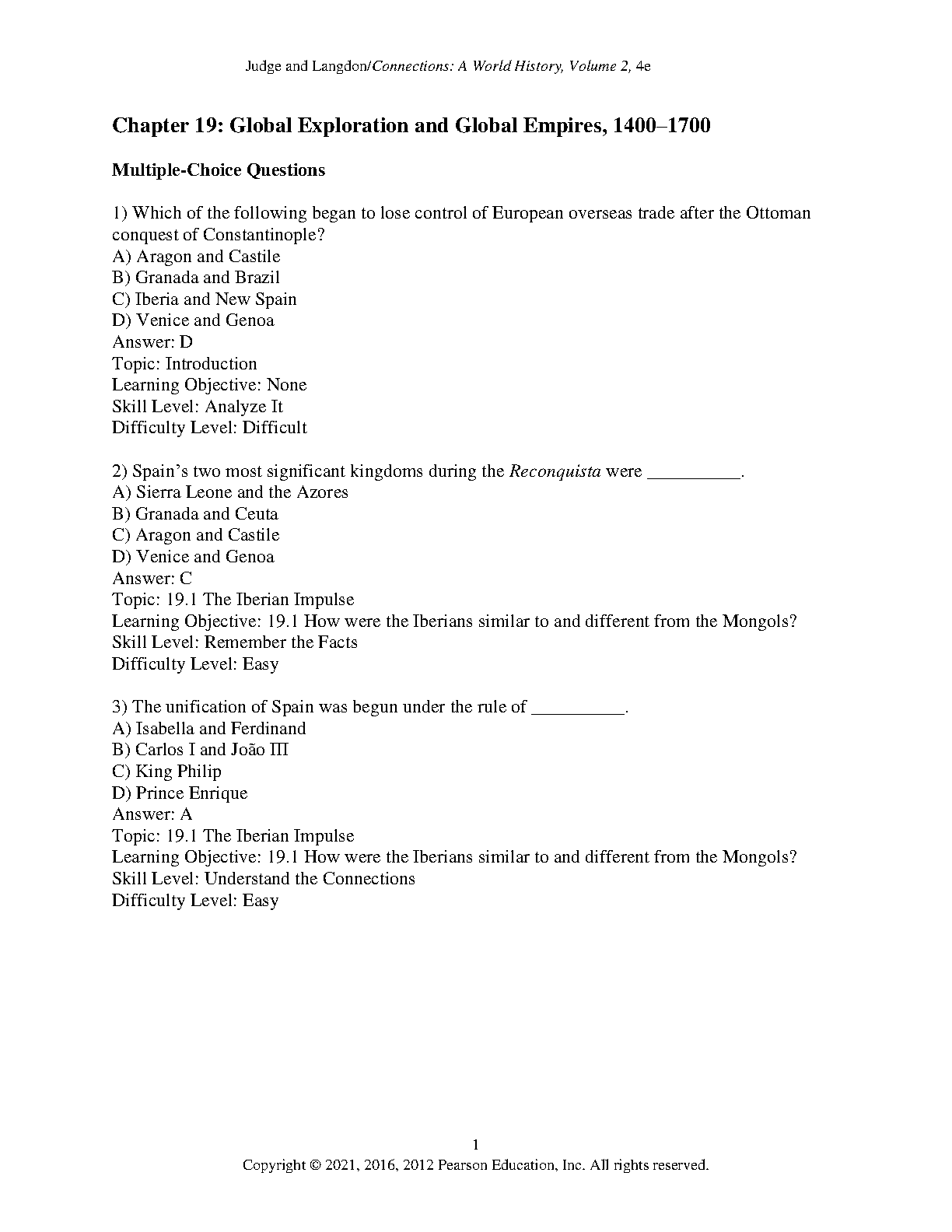 Test Bank for Connections: A World History, Volume 2 (Chapters 19-38), Fourth Edition by Edward H. Judge and John W. Langdon