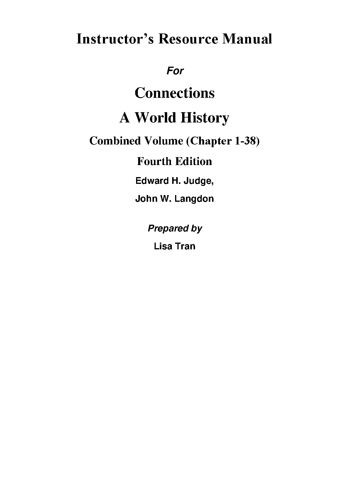 Instructor's Resource Manual for Connections: A World History, Fourth Edition by Edward H. Judge and John W. Langdon