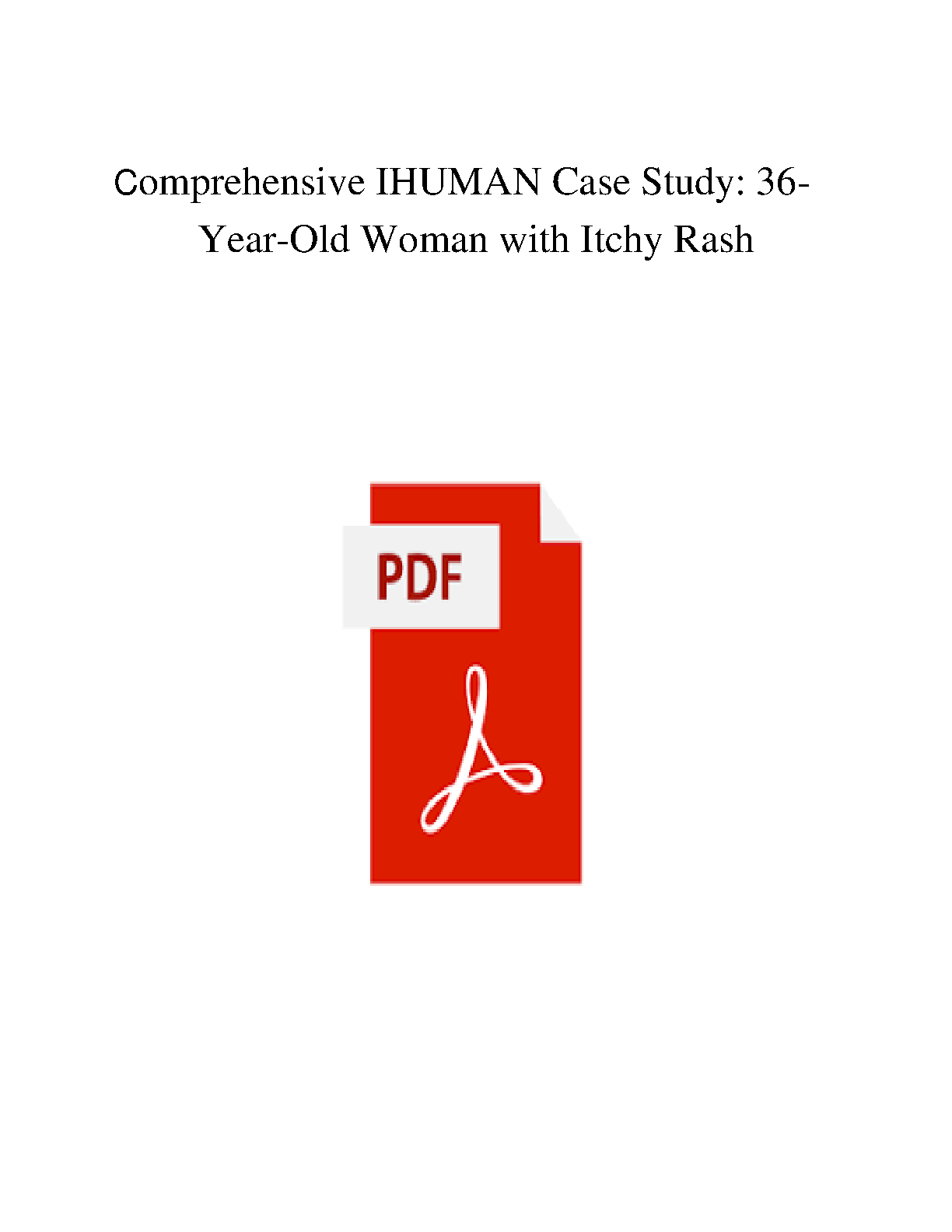 Ace your nursing exams with this comprehensive iHuman case study, designed to help students pass on their first attempt. This detailed resource covers a 36-year-old woman presenting with an itchy rash, providing a realistic clinical scenario for effective learning. Perfect for 2024/2025 academic year.