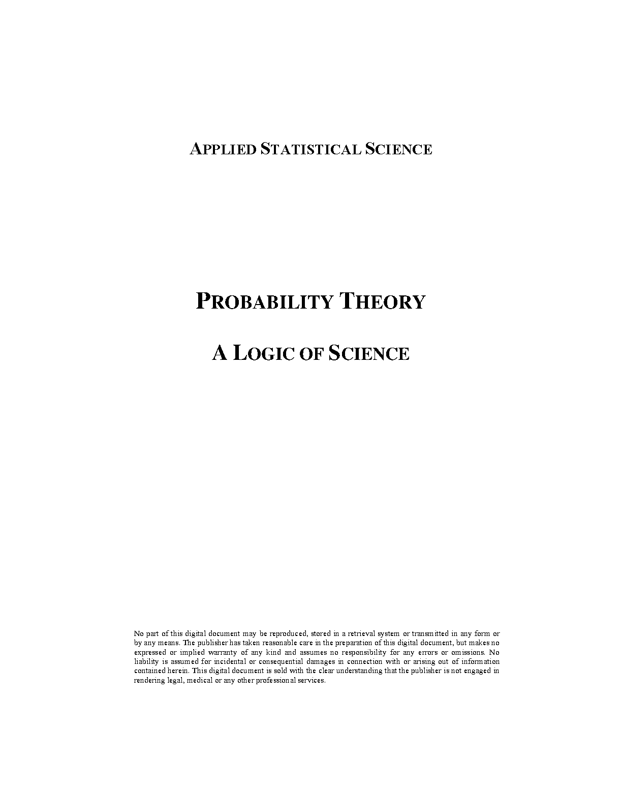 Probability Theory: A Logic of Science by Valery B. Nevzorov, Mohammad Ahsanullah, and Sergey Annanjevskiy