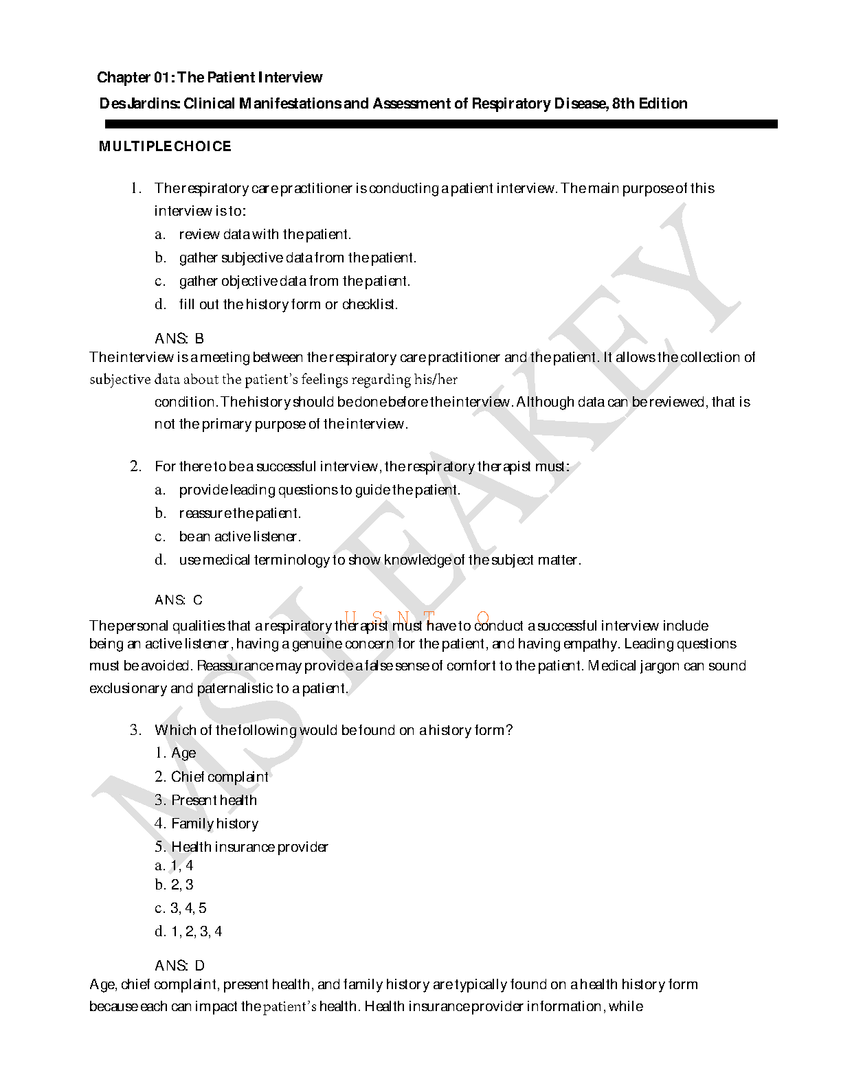 Ace your Respiratory Exams with this updated 2024-2025 Test Bank for Clinical Manifestations and Assessment of Respiratory Disease, 9th Edition, by Terry R. Des Jardins and George G. Burton. This comprehensive resource is designed to help students pass their exams on the first try, avoiding costly resits.