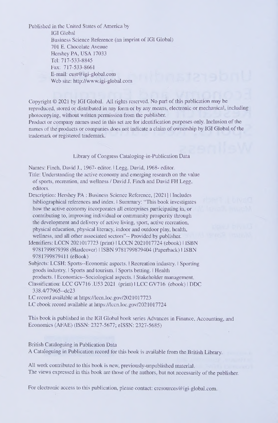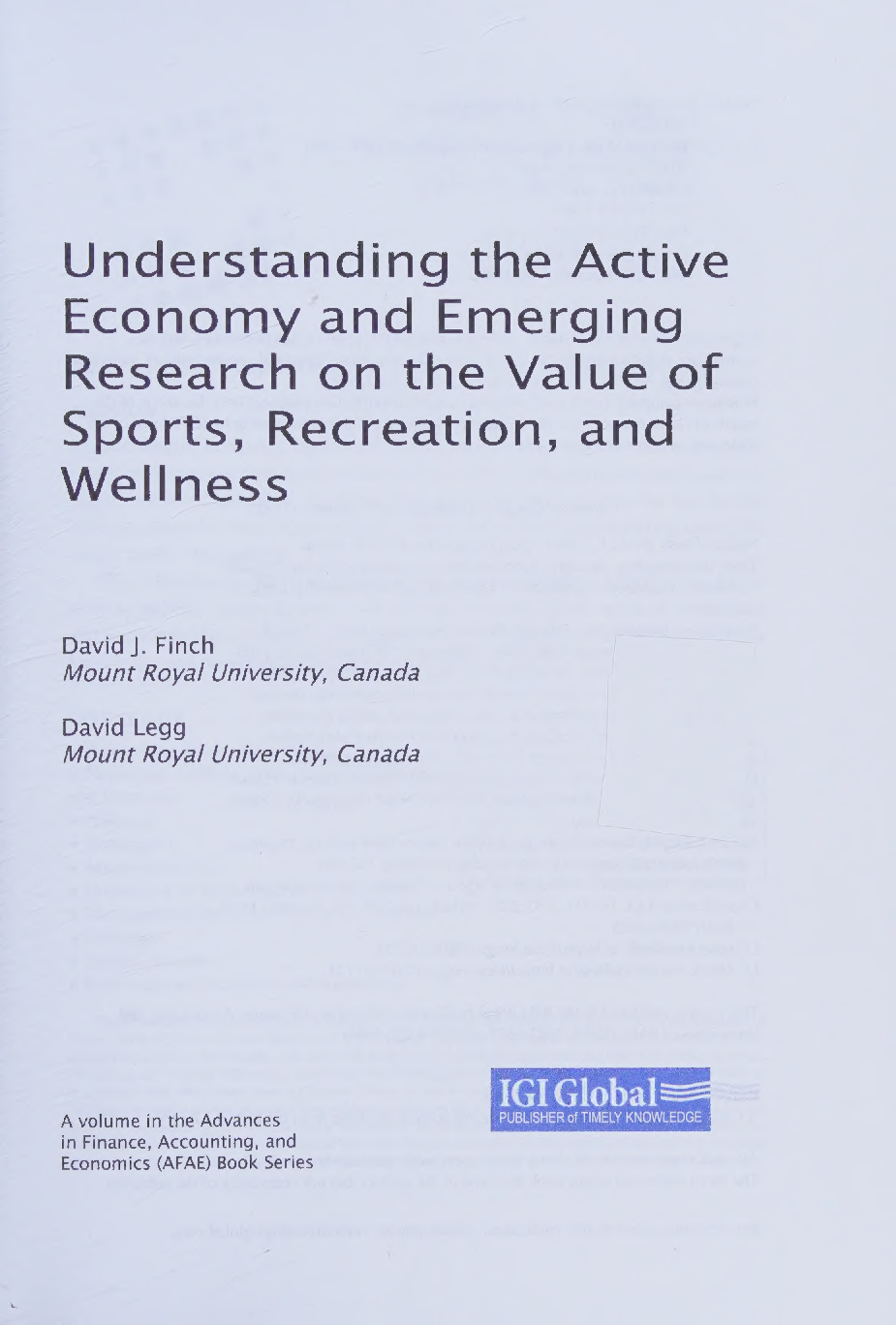 Understanding the Active Economy and Emerging Research on the Value of Sports, Recreation, and Wellness by David J. Finch and David Legg (1st Edition)