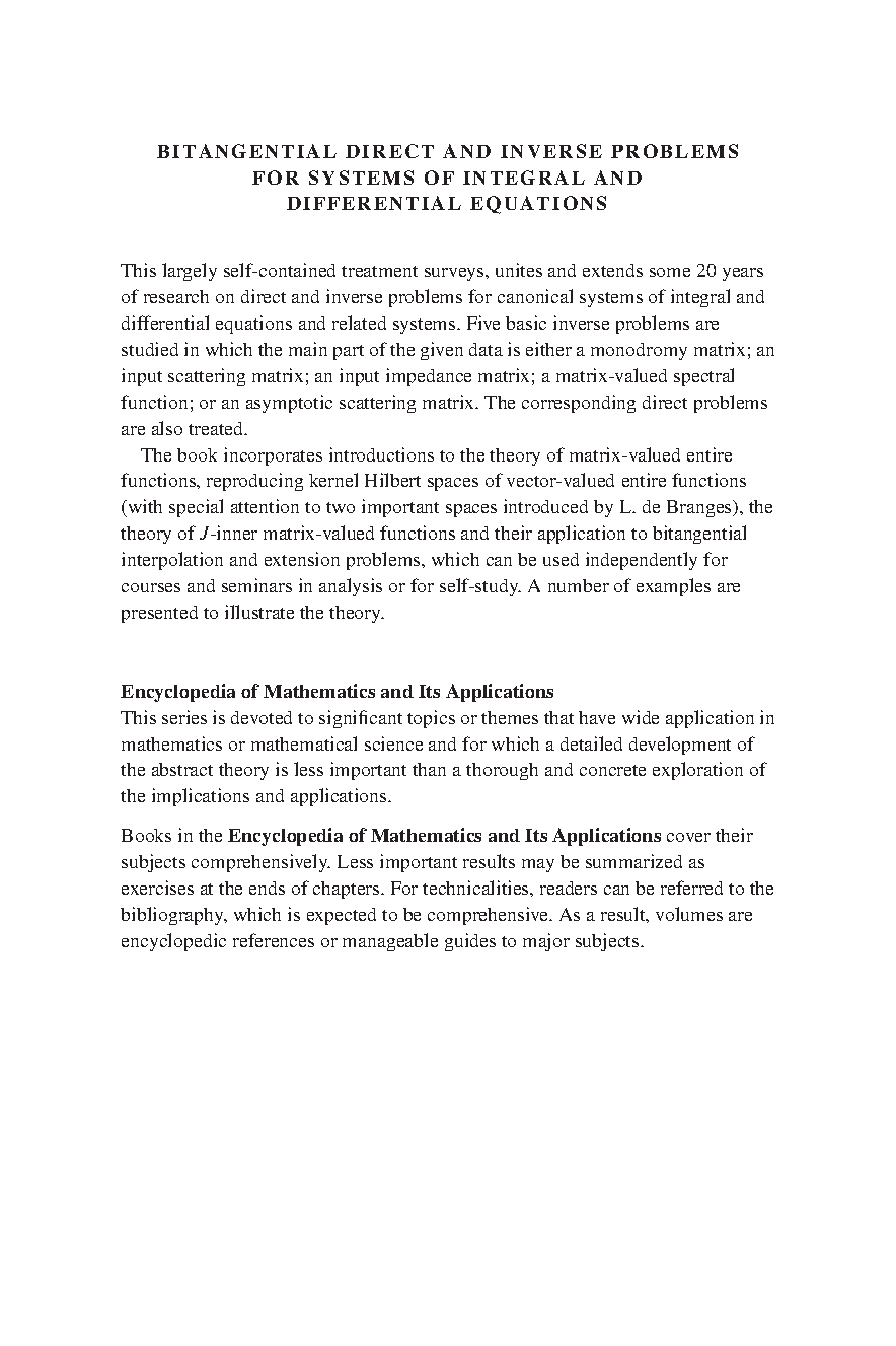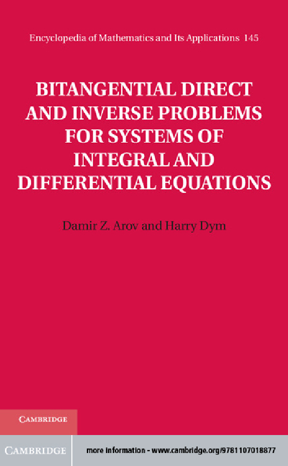Bitangential Direct and Inverse Problems for Systems of Integral and Differential Equations by Damir Z. Arov and Harry Dym